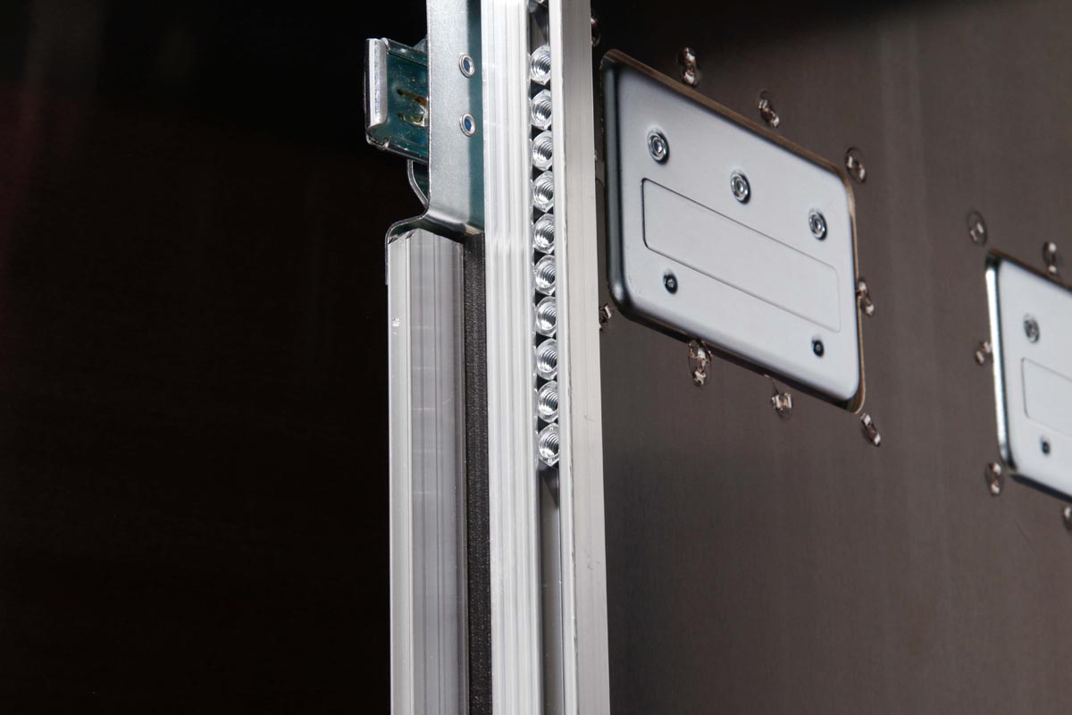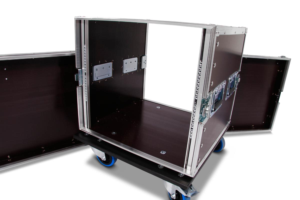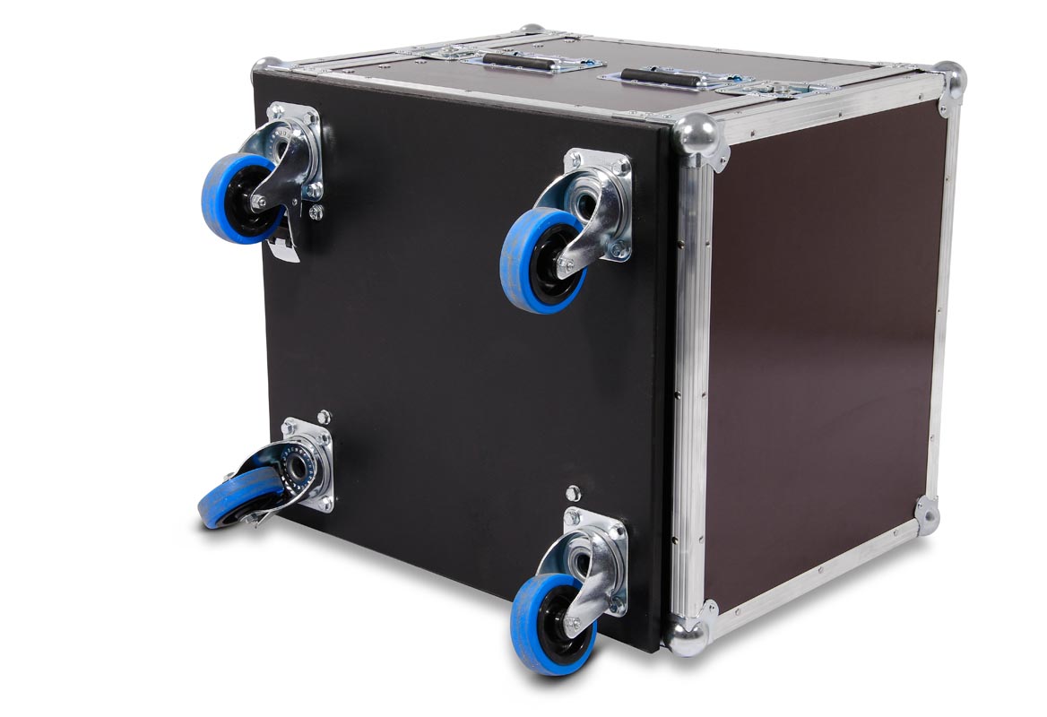 Die Bauform dieses Flightcases ermöglicht die einfache Bedienung von beiden Seiten.