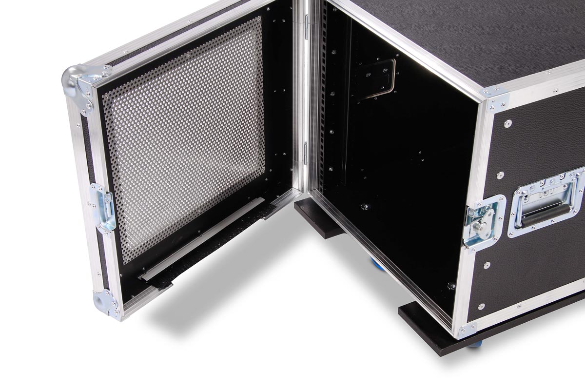 Double Door Profi Rack mit jeweils Lüftungs Lochblechen in beiden Türen. Die Türen sind zum Aushängen.