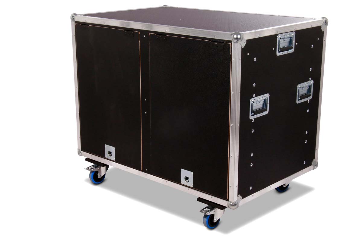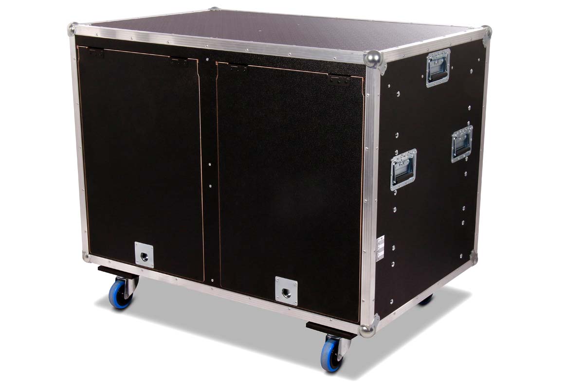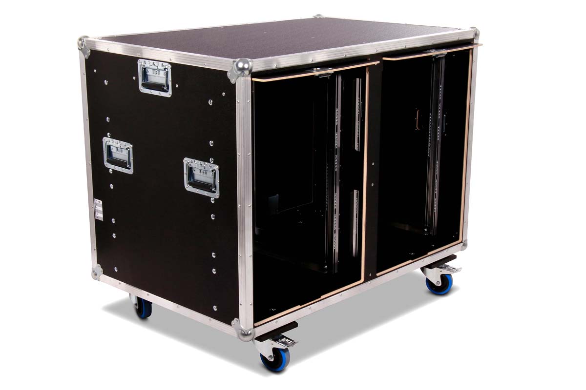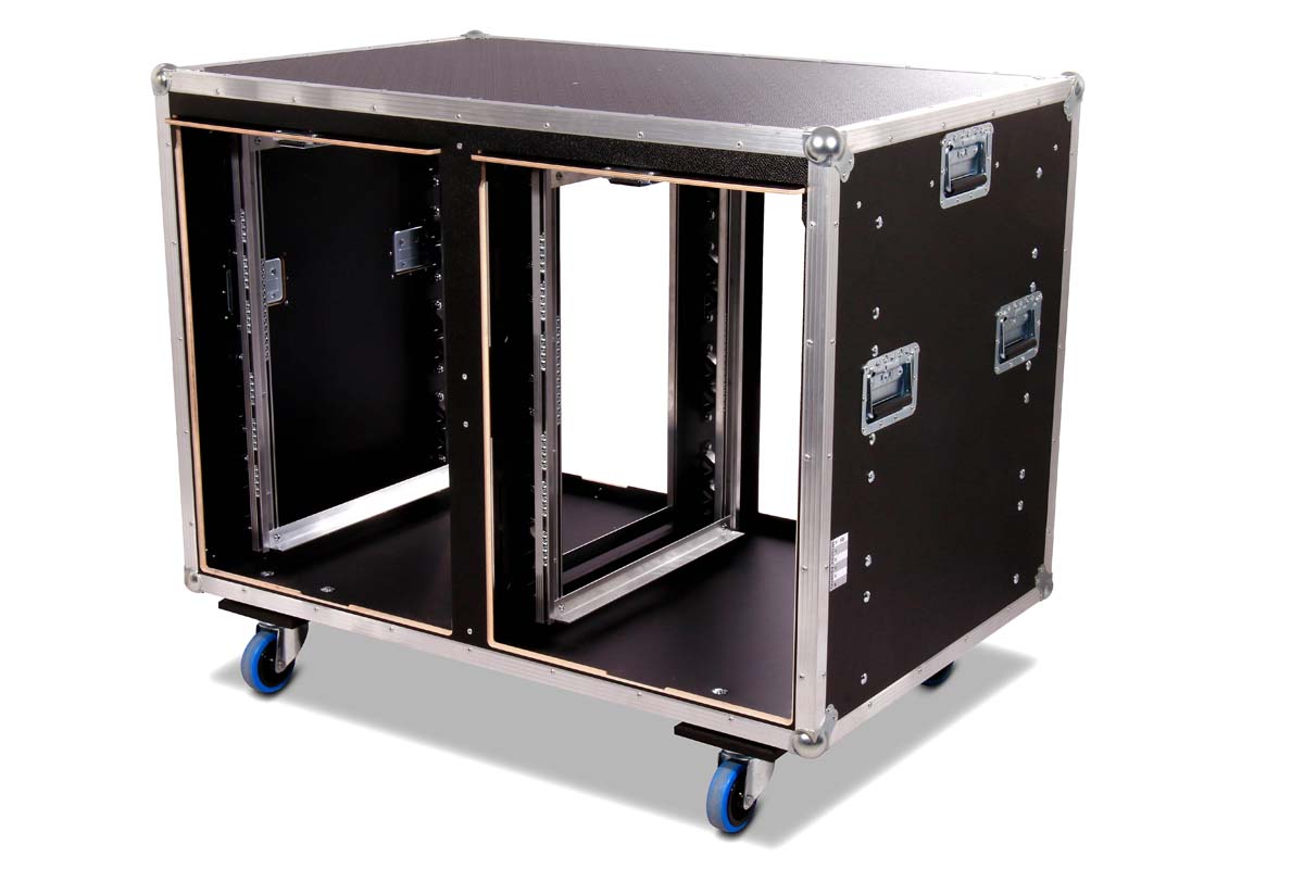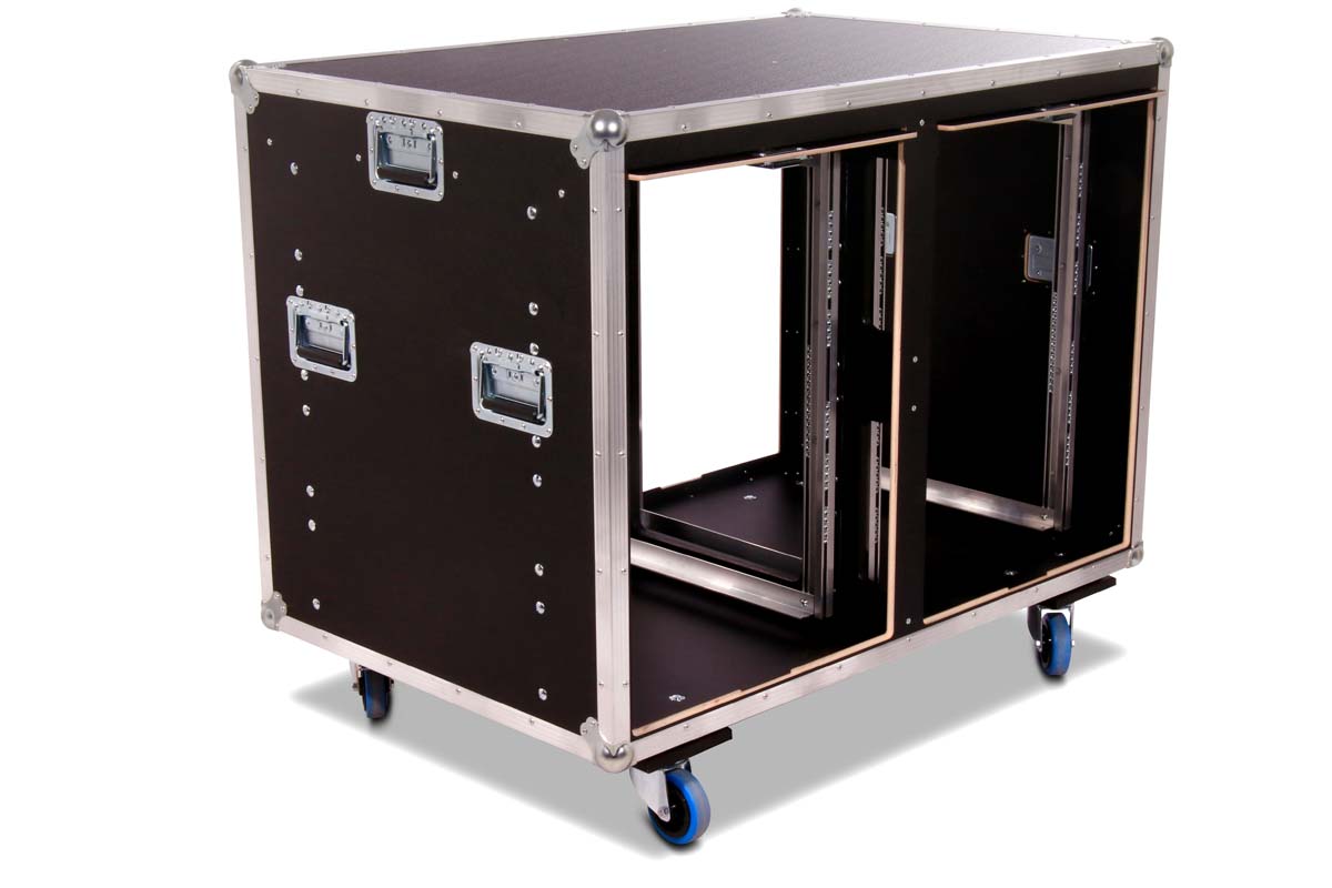 15 HE Rack für 19 Zoll Einbaugeräte mit 4 Türen die als Sliding Version oberhalb der Einbauten