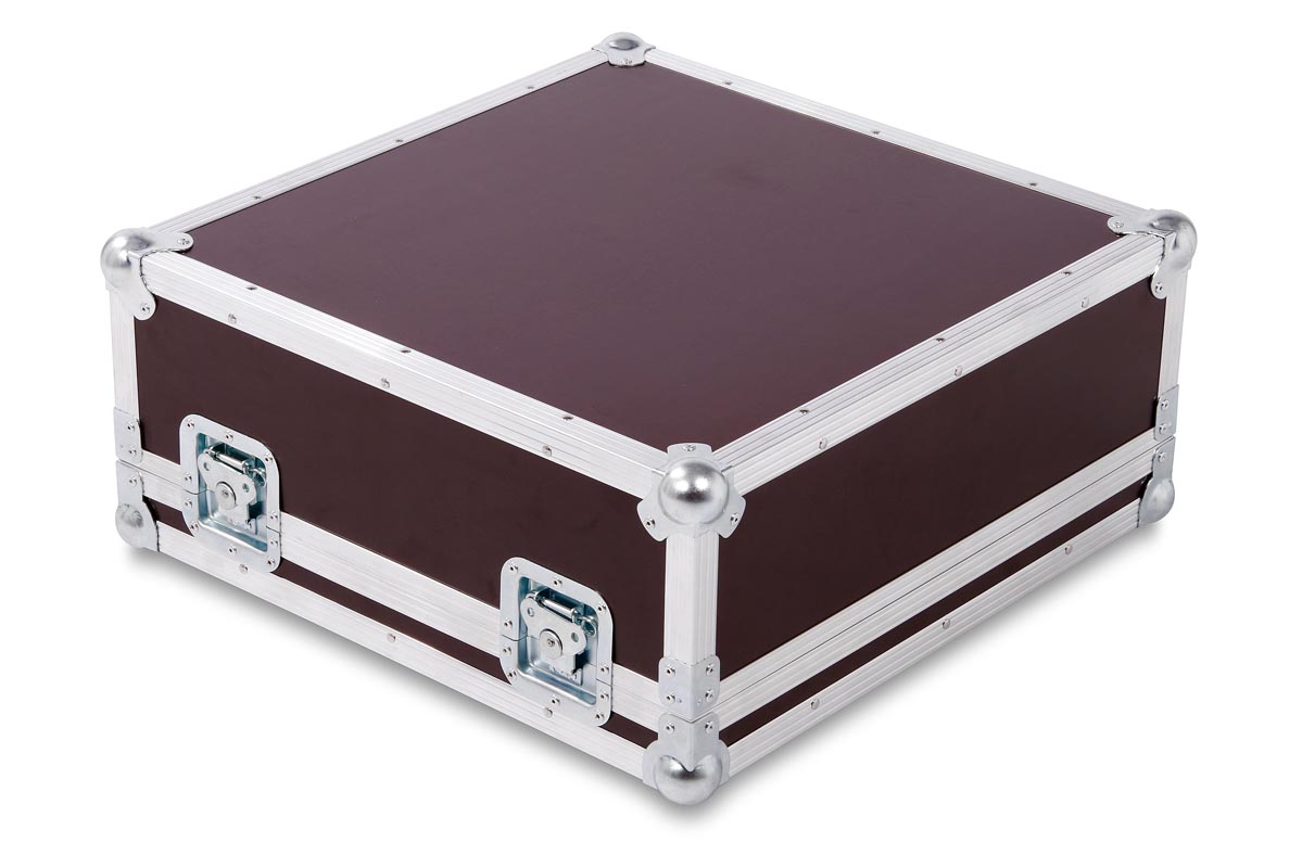 Zwischen zwei Rackschienen sitzt das Mischpult sicher und fest verschraubt.