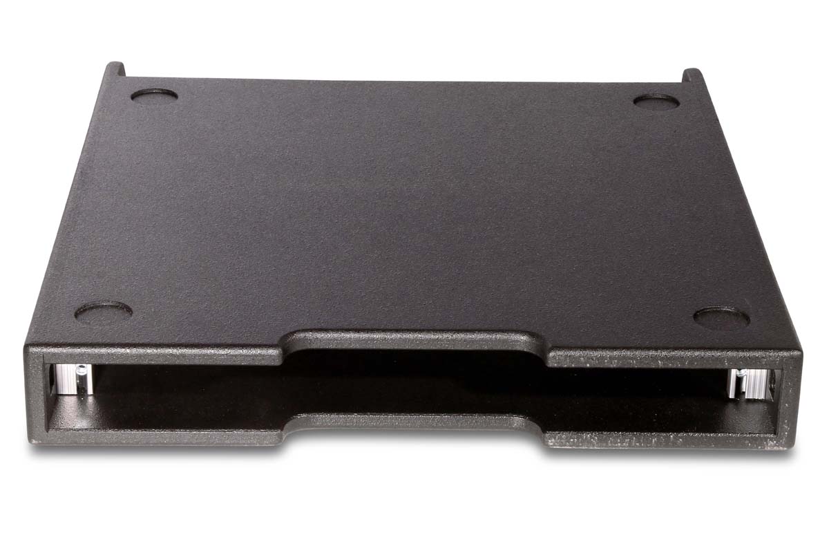 stapelbar durch gefräste Mulden für Gummifüße oben