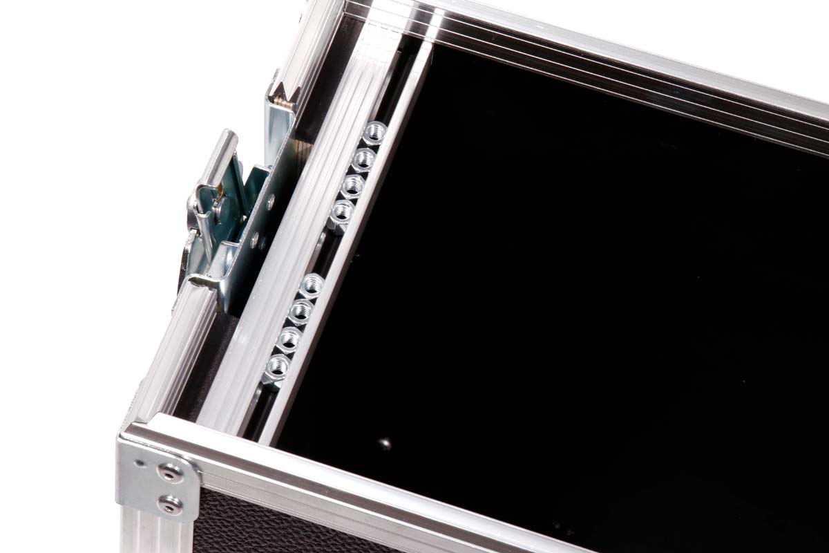 Die Stagebox wird von oben in die Rackschienen eingesetzt und mit den mitgelieferten Schraubensatz befestigt.