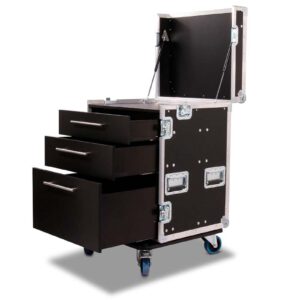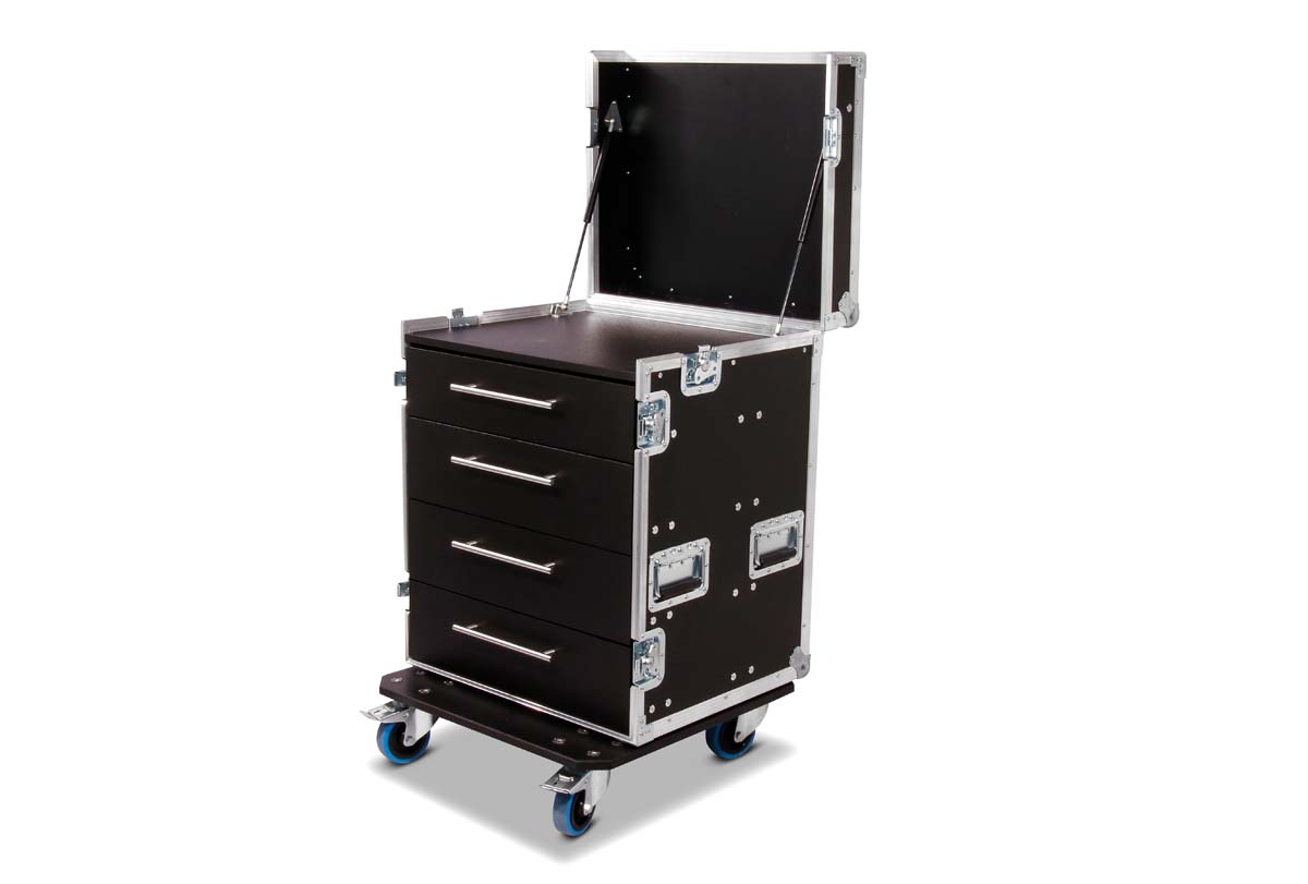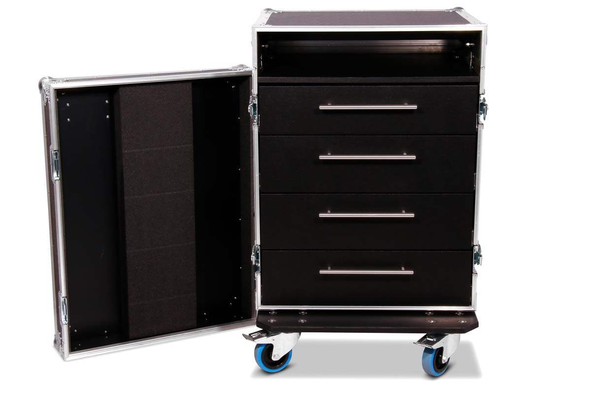 Schubladencase mit 4 Schubladen, Deckel vorne und oben zum öffnen, oben eine Ablage,