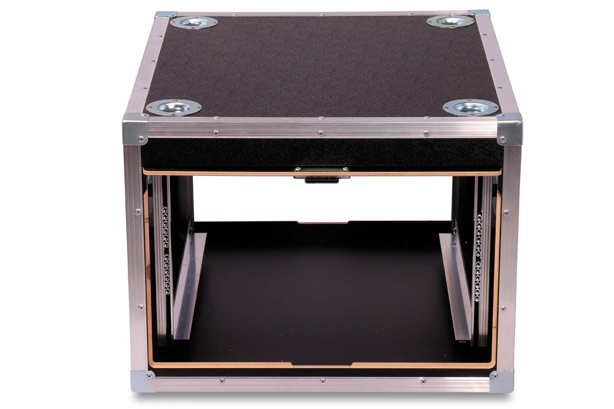 jede Rackschiene wird durch Gummipuffer einzeln gefedert