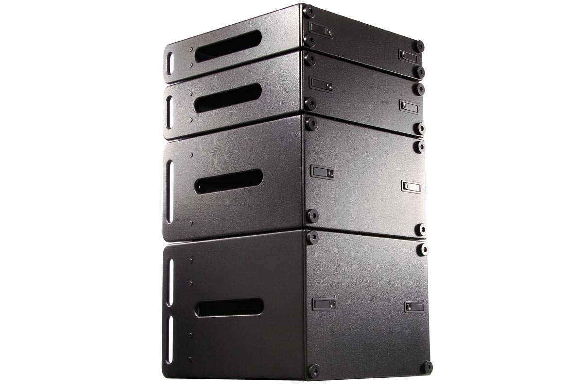 Eingefräste Stapelmulden und passende Gummifüße ermöglichen exaktes stapeln der Module.