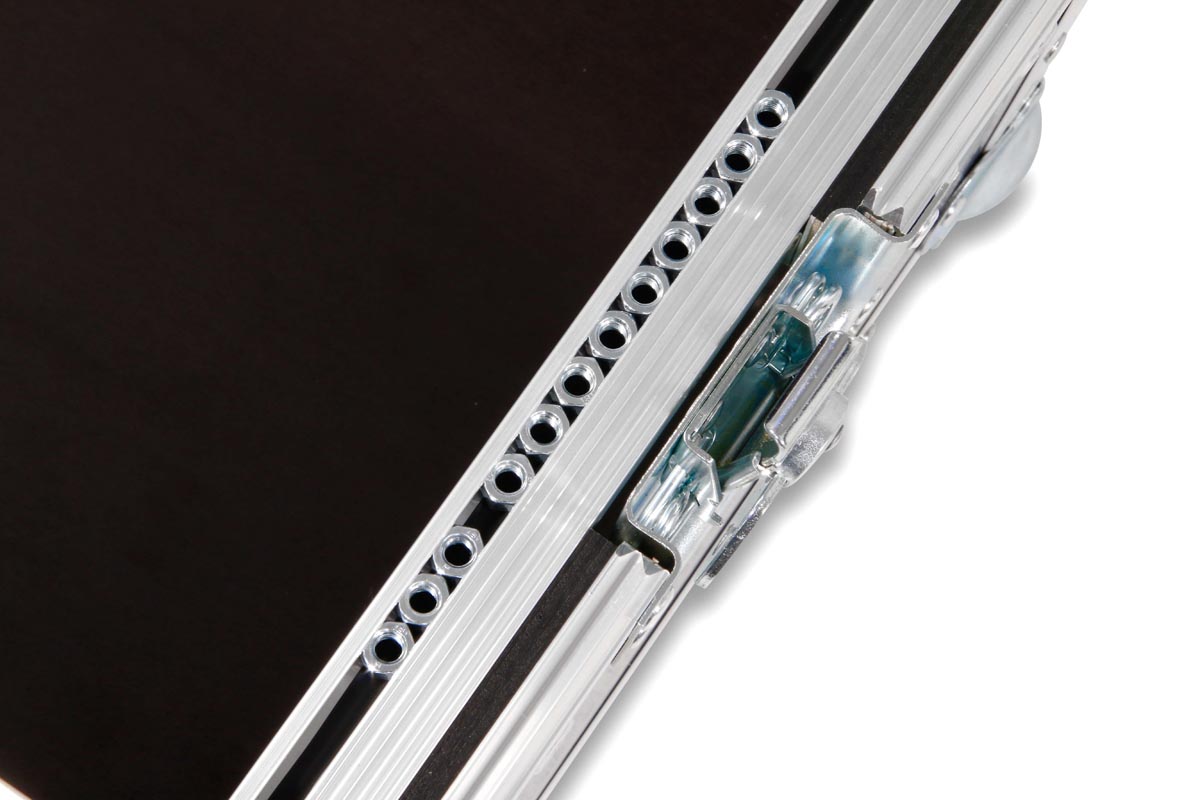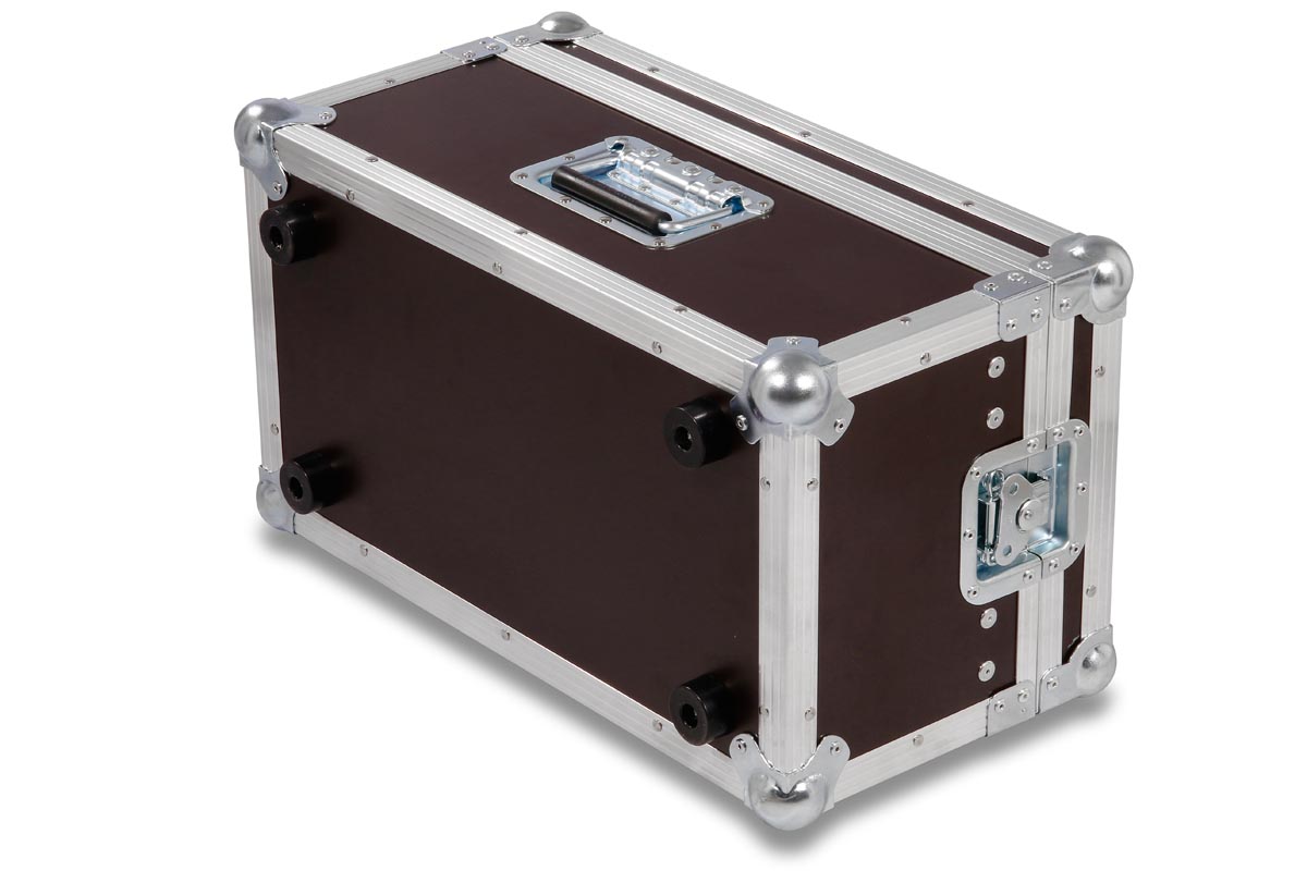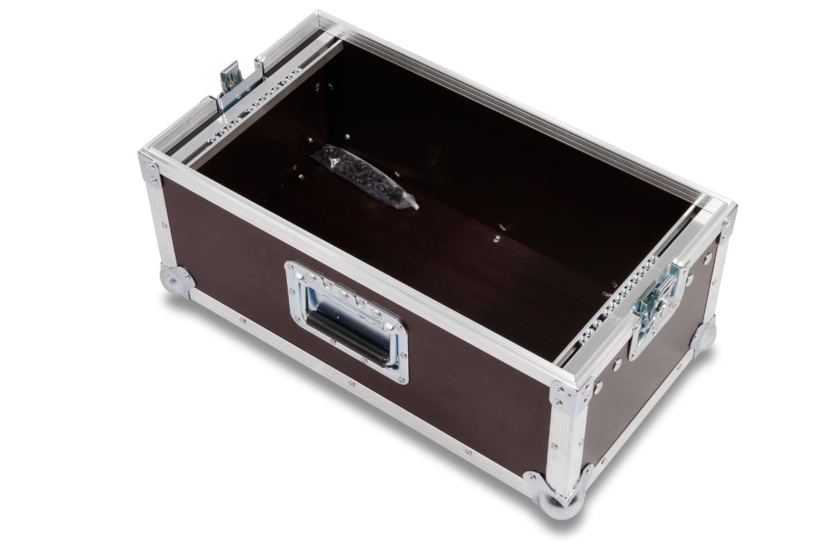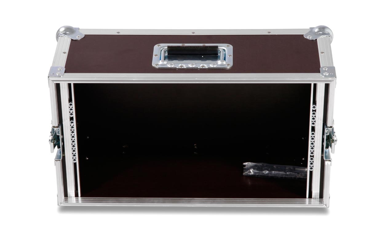 Stagebox Koffer mit einer Einbautiefe von 18 cm und 6 HE Rackschiene für 19 Zoll Geräte.