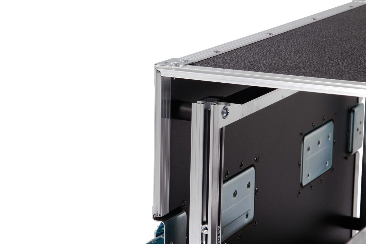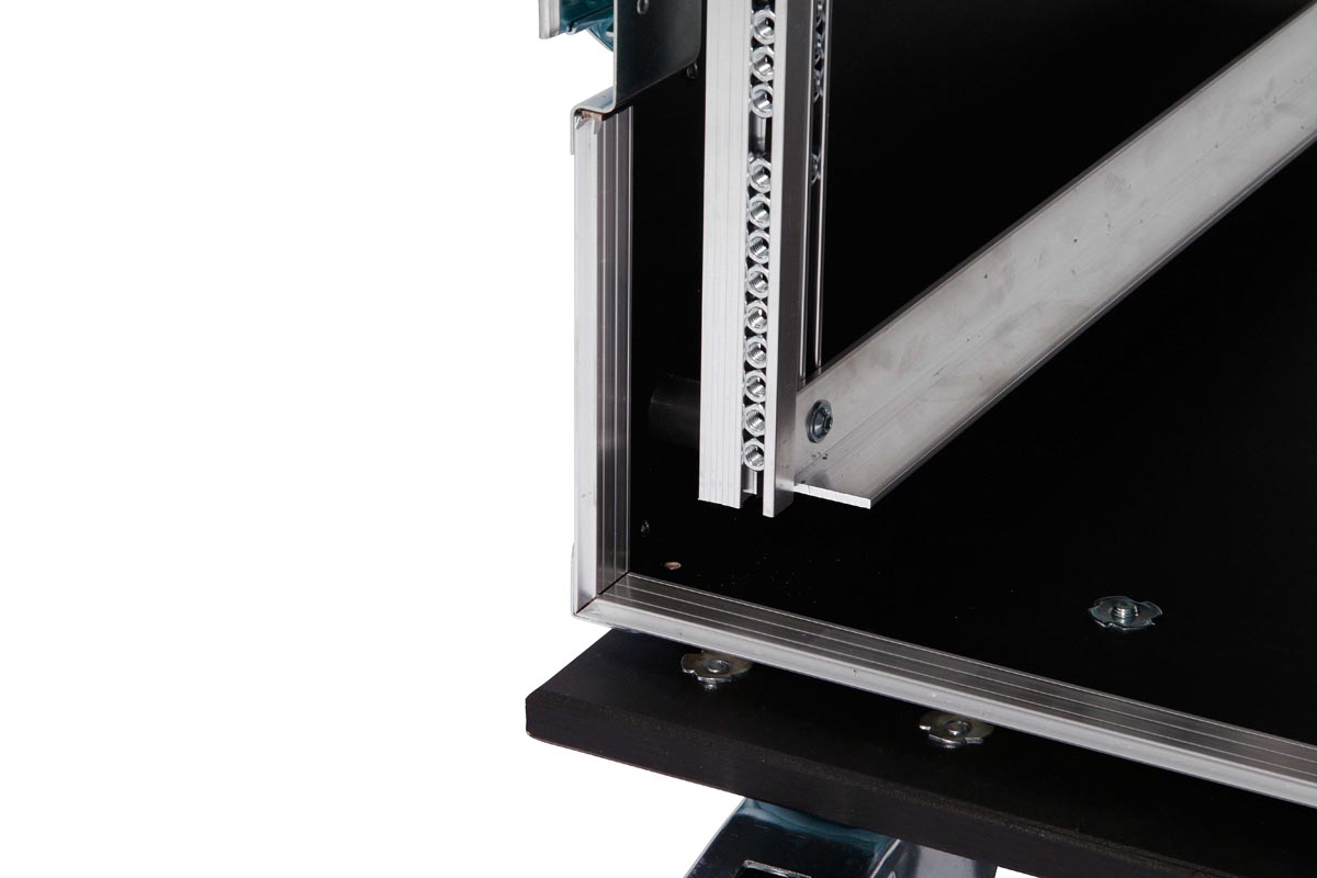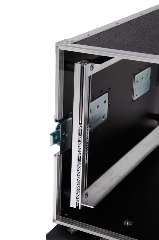Double Door Rack mit Shockmount Aufnahmesystem. Die schwingend gelagerten Rackschienen,