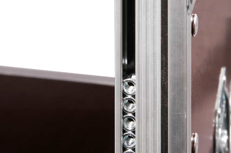 spezielle Overlach Butterfly Verschlüsse verbinden zwei Racks oder Cases fest miteinander.