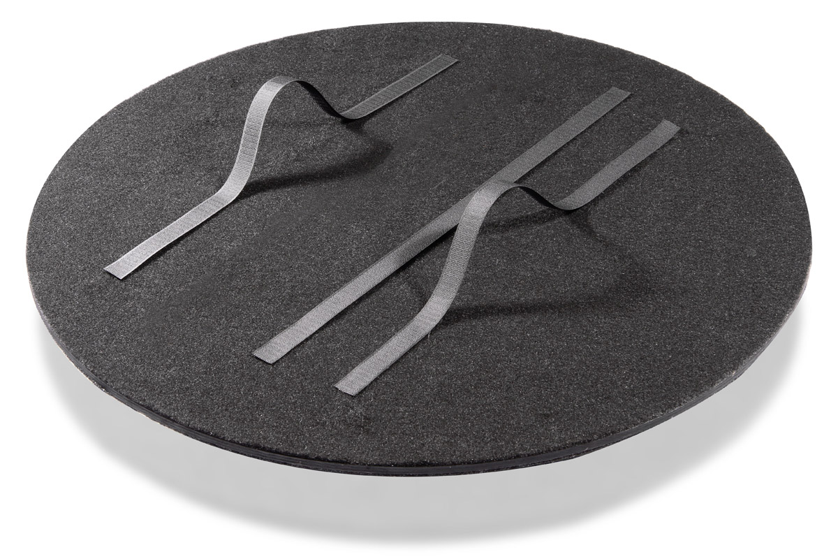 Abdeckung für 29“ Pauke. Es sind beide Seiten eines 9 mm starkem Multplex Brettes mit Filz bezogen.