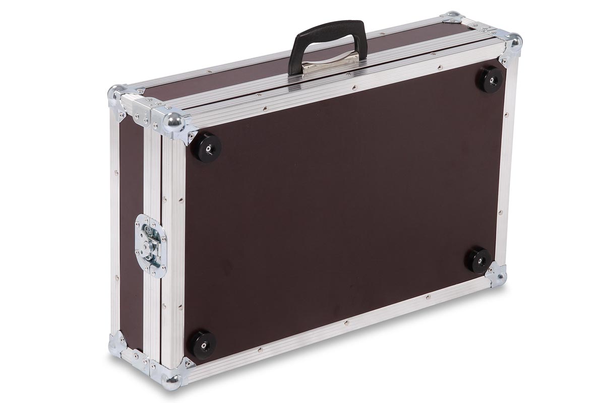 In dieser Transporthaube sitzt Ihr Effekt Top geschützt. Nach dem Öffnen können Sie die Kabel sofort anschließen und loslegen, noch im Unterteil stehend.