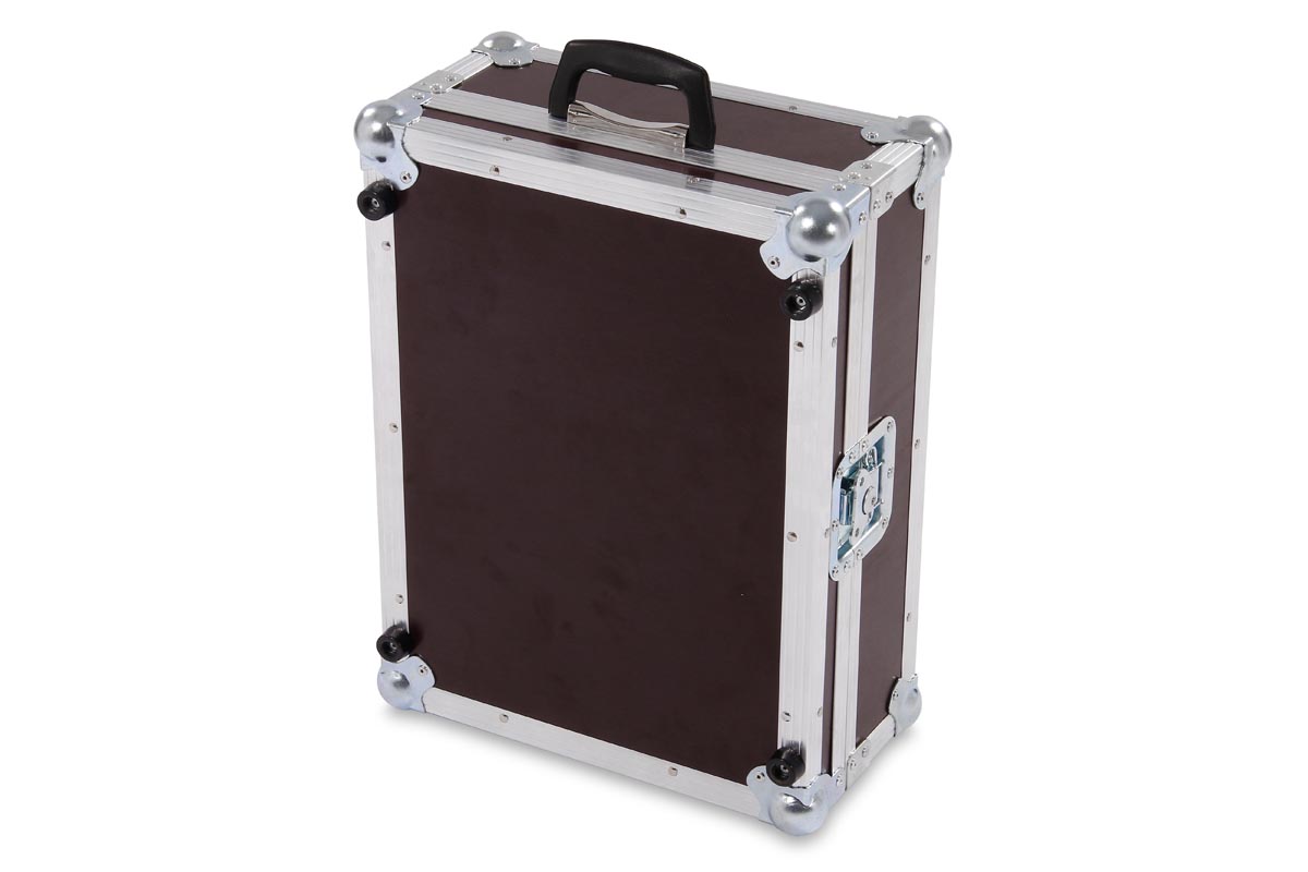 Nach Maß gefertigtes Haubencase für einen Denon DJ SC5000 Prime Player. Alle Anschlüsse sind direkt zugänglich. Im Rückraum und unter dem Gerät ist Platz für Kabel und mehr.
