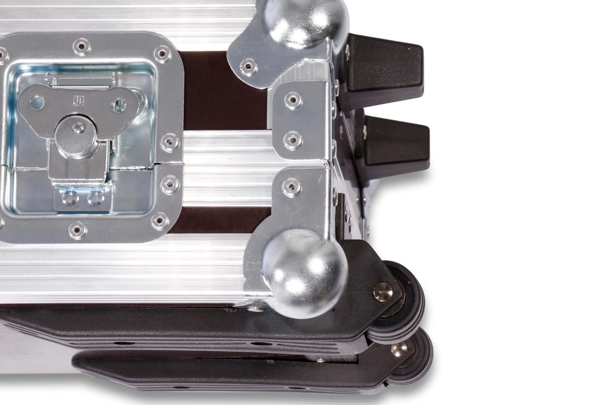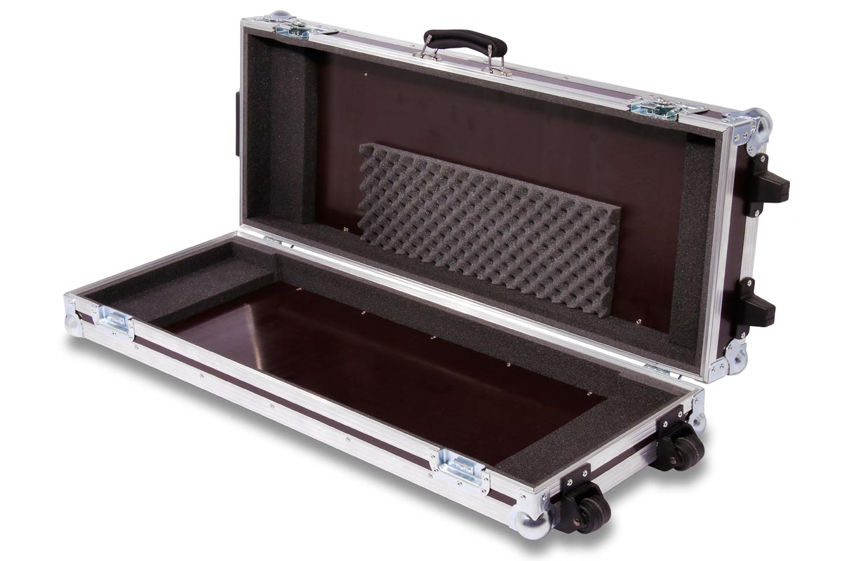 Keyboard-Case spezial aus Holz mit Eckrollen für Geräte mit 61 Tasten.