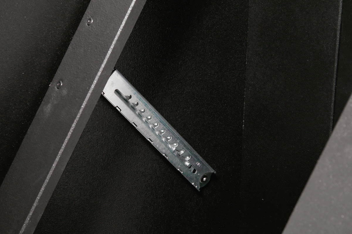 Der Innenaufbau ist mit schwarzem Strukturlack überzogen.