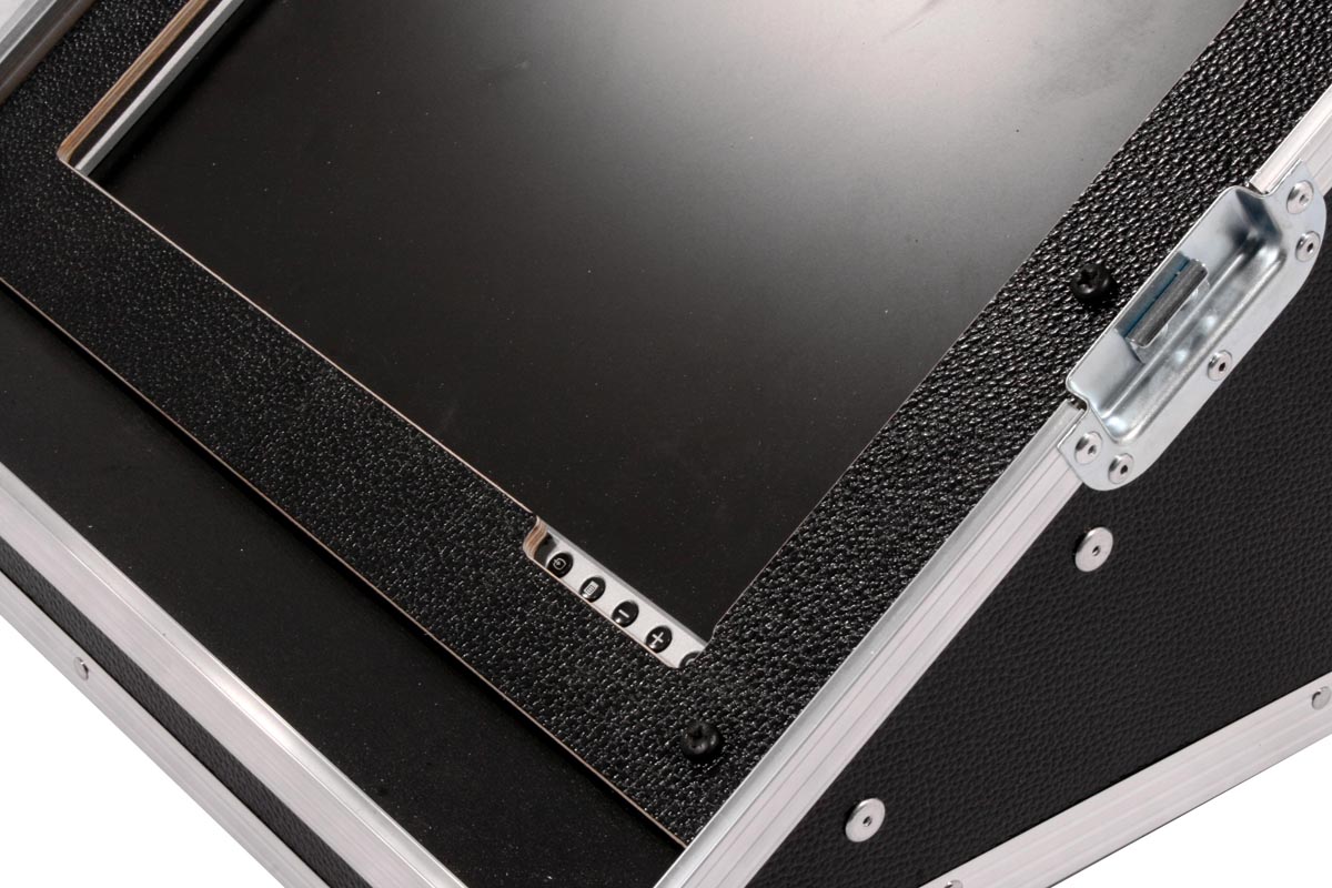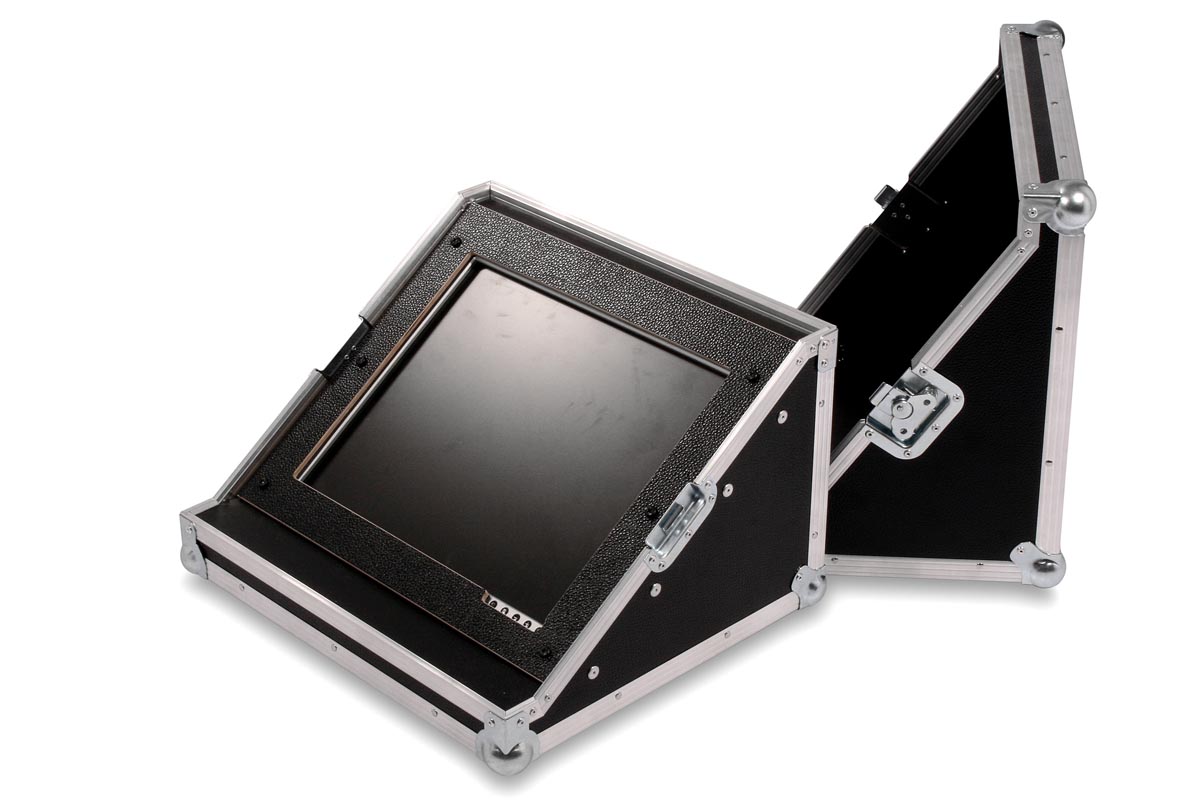 Truhe mit zwei 45 Grad abgeschrägten Hälften für ein Telepromter Display DELL 1907.