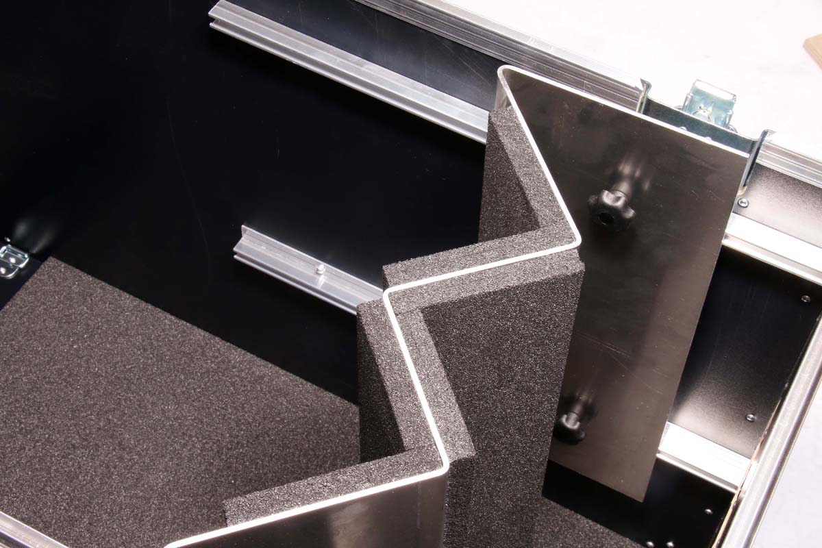 Bildschirme können mittels seitlich variabler Halterungen fest im Case fixiert werden