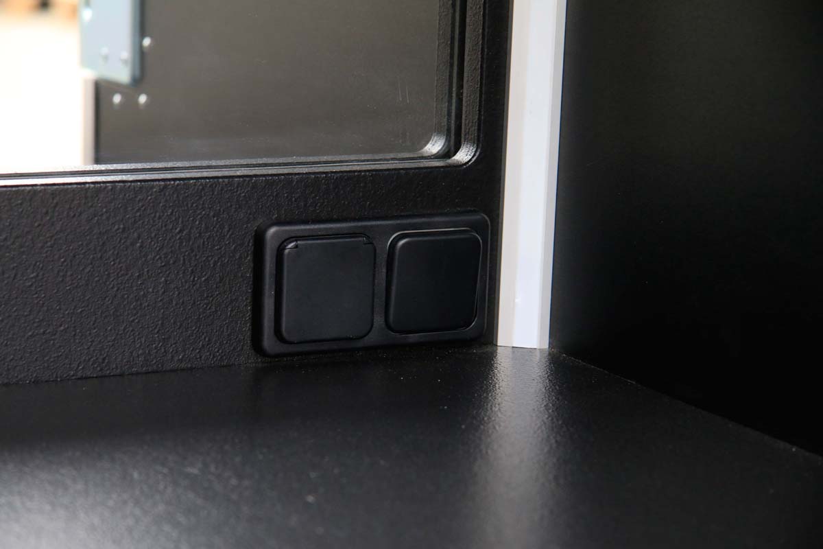 vier Schubladen mit Softstop und ca. 140mm Nutzhöhe, drei Klappfächer, Kleiderstange mit großem Fach, Lüftungsschalen u.s.w.