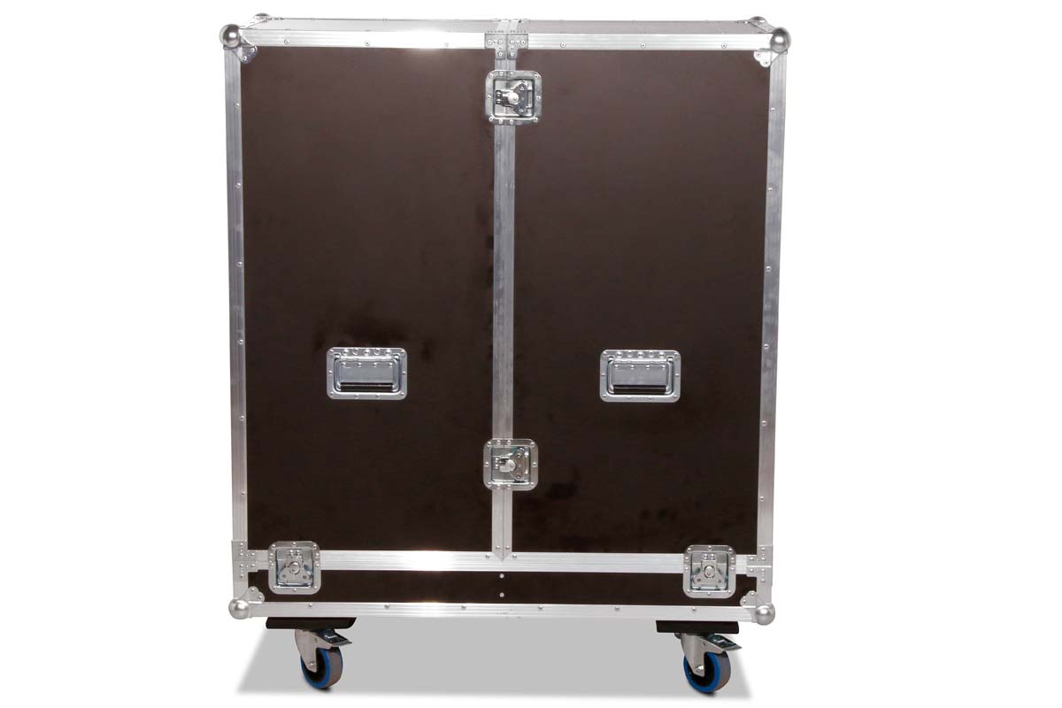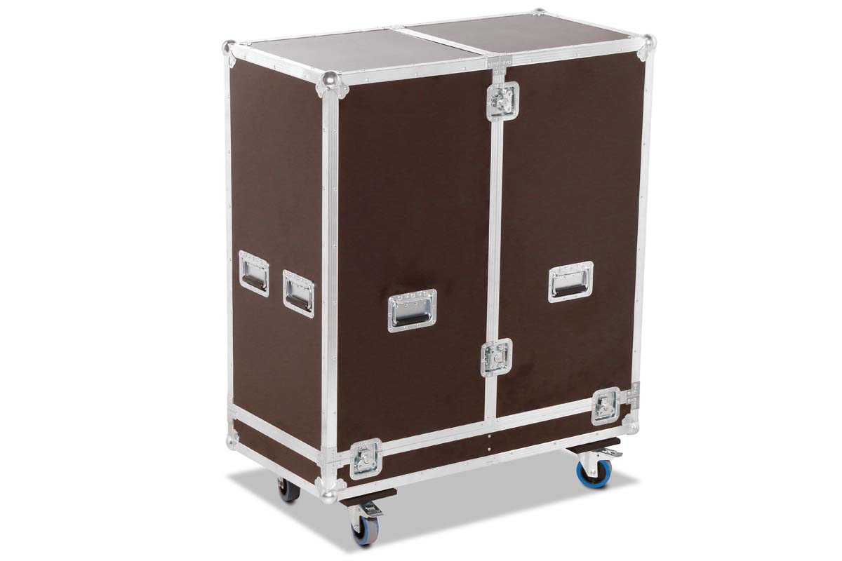 geteiltes Profi Haubencase auf Rollen für 2x RCF NX 985-A Full Range Lautsprecher,