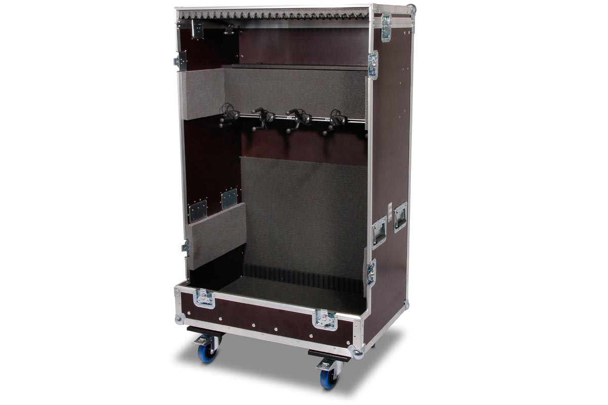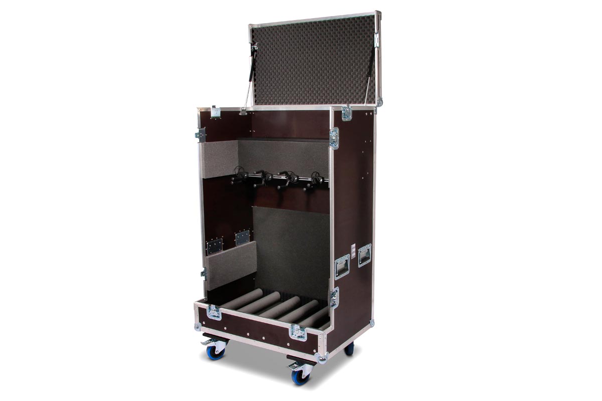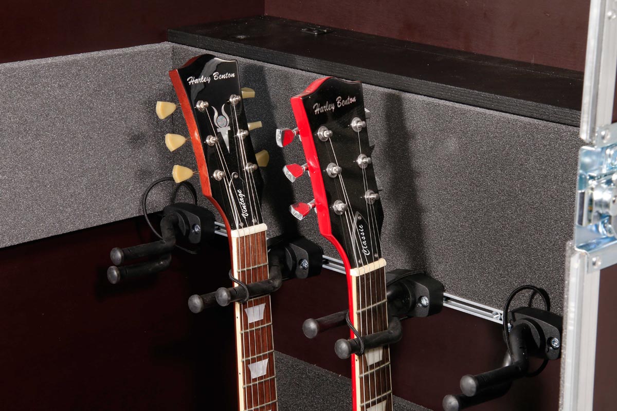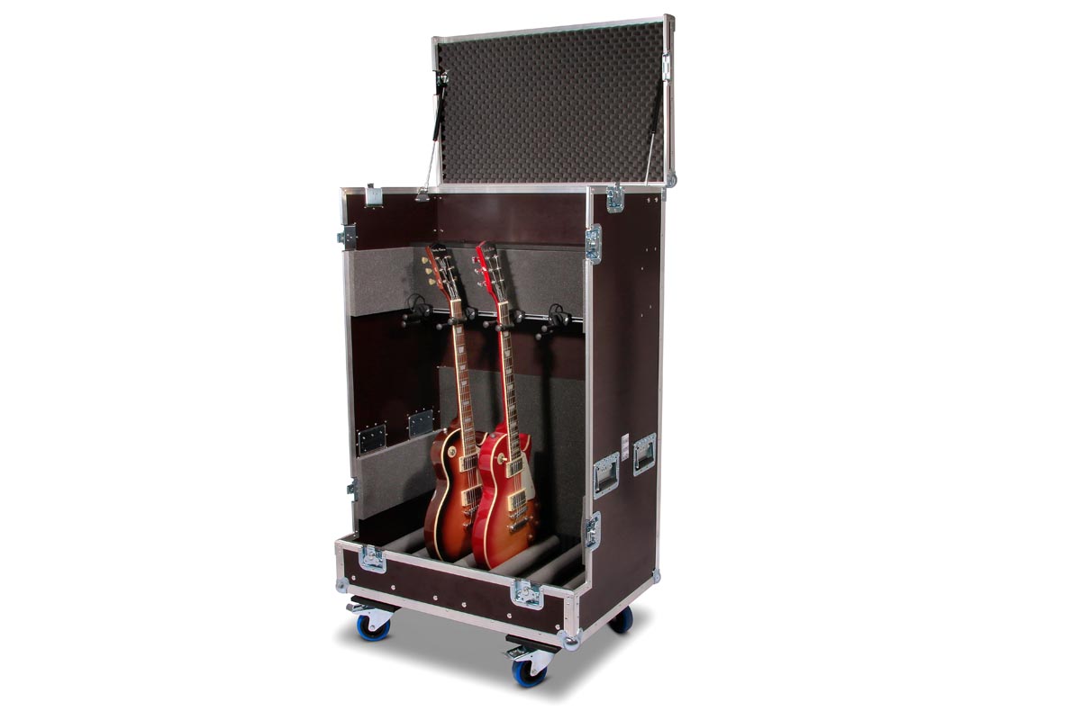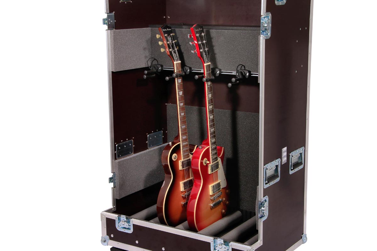Ein sehr variables Transportcase für fünf E-Gitarren. Das Griffbrett wird mit einem