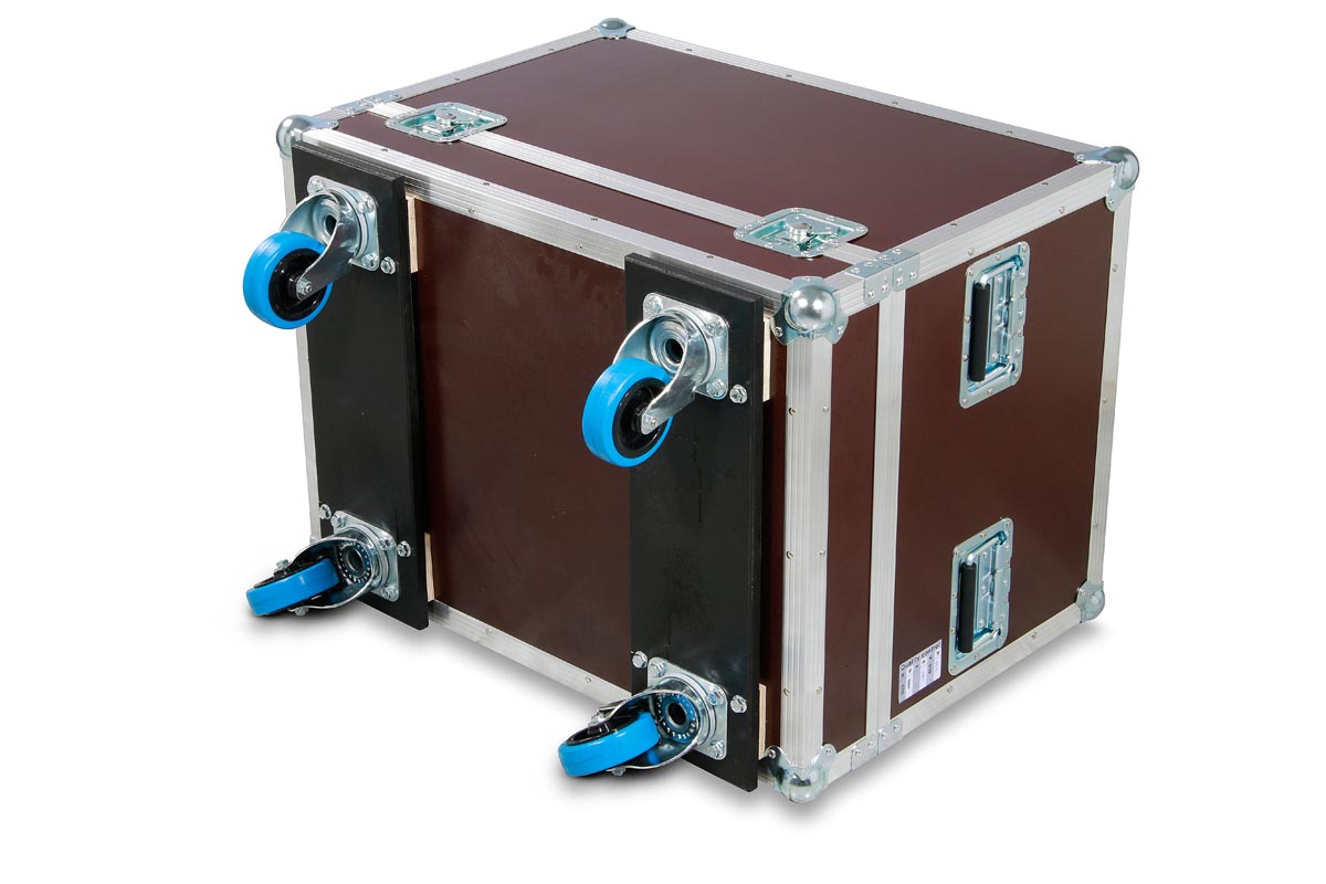 Haubencase auf Rollen Mackie SRM 650 liegend