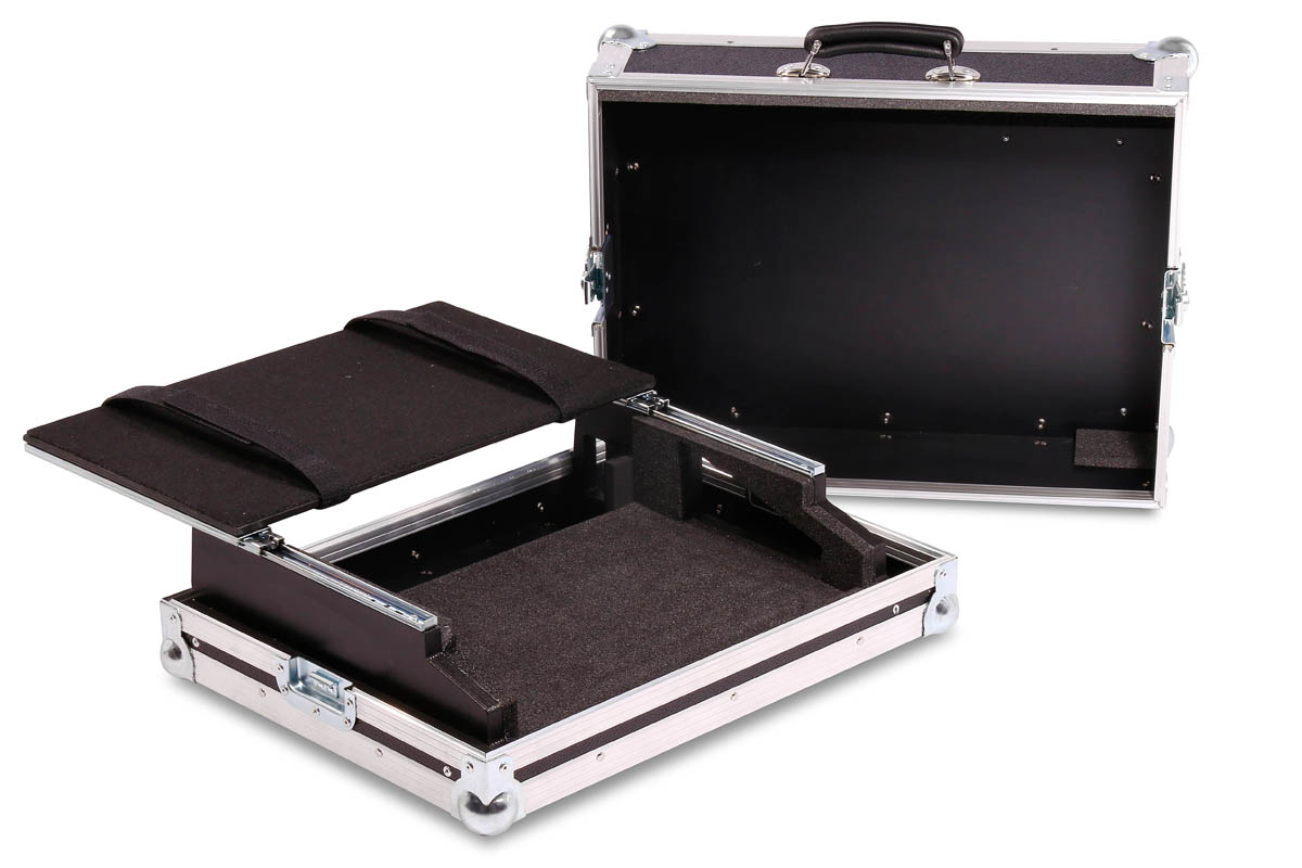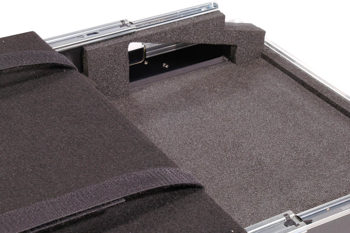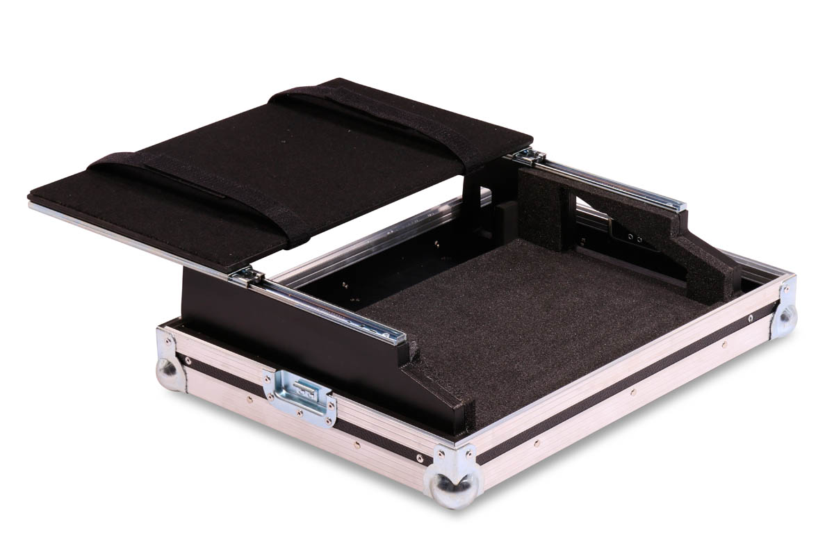Live Haubencase für Avolites Titan Mobile mit Kabelkanal hinter dem Gerät und mit Filz bespannten Schlitten.