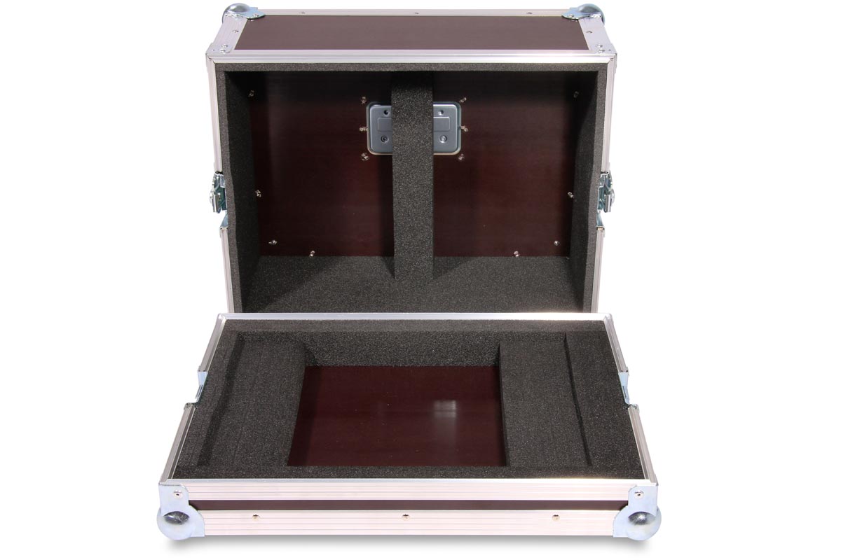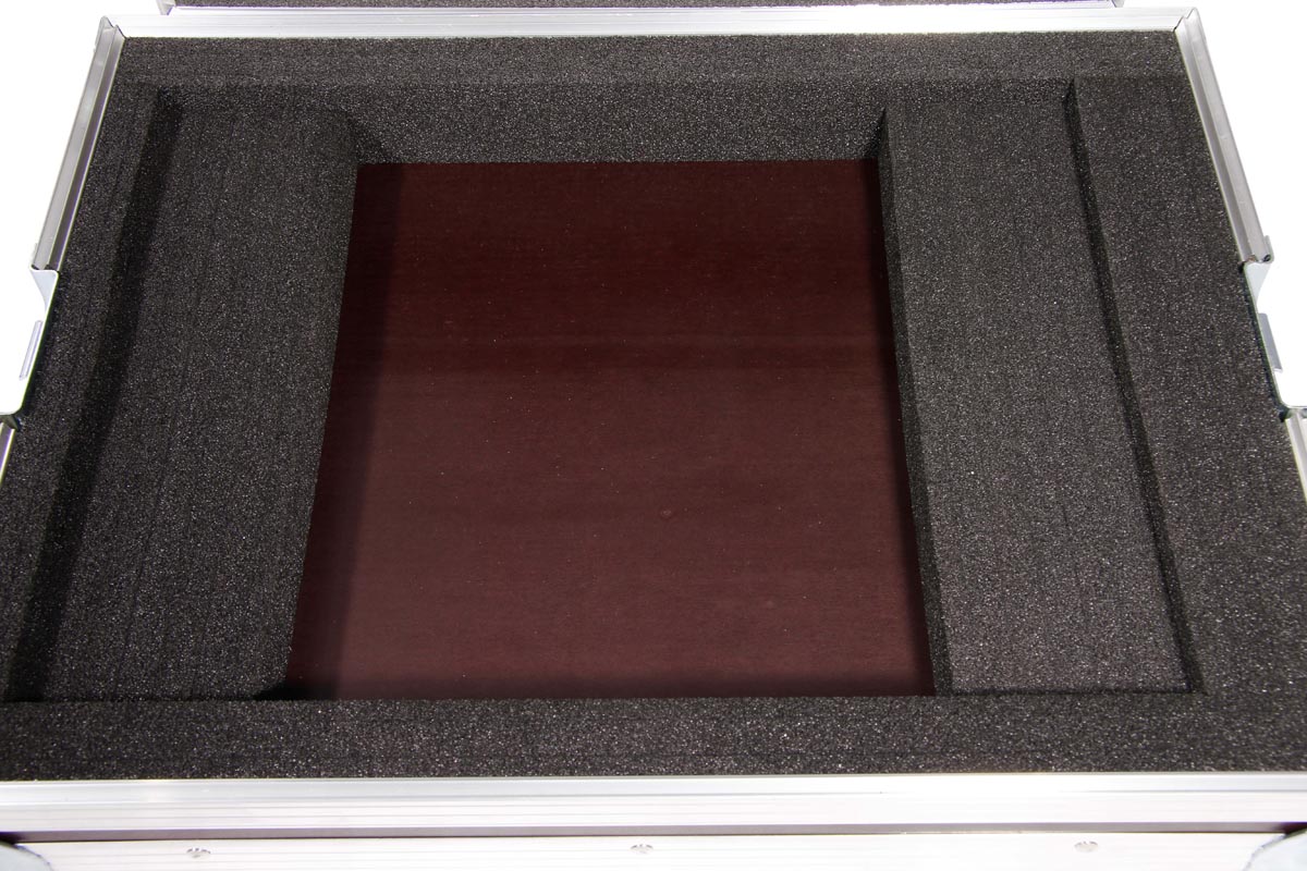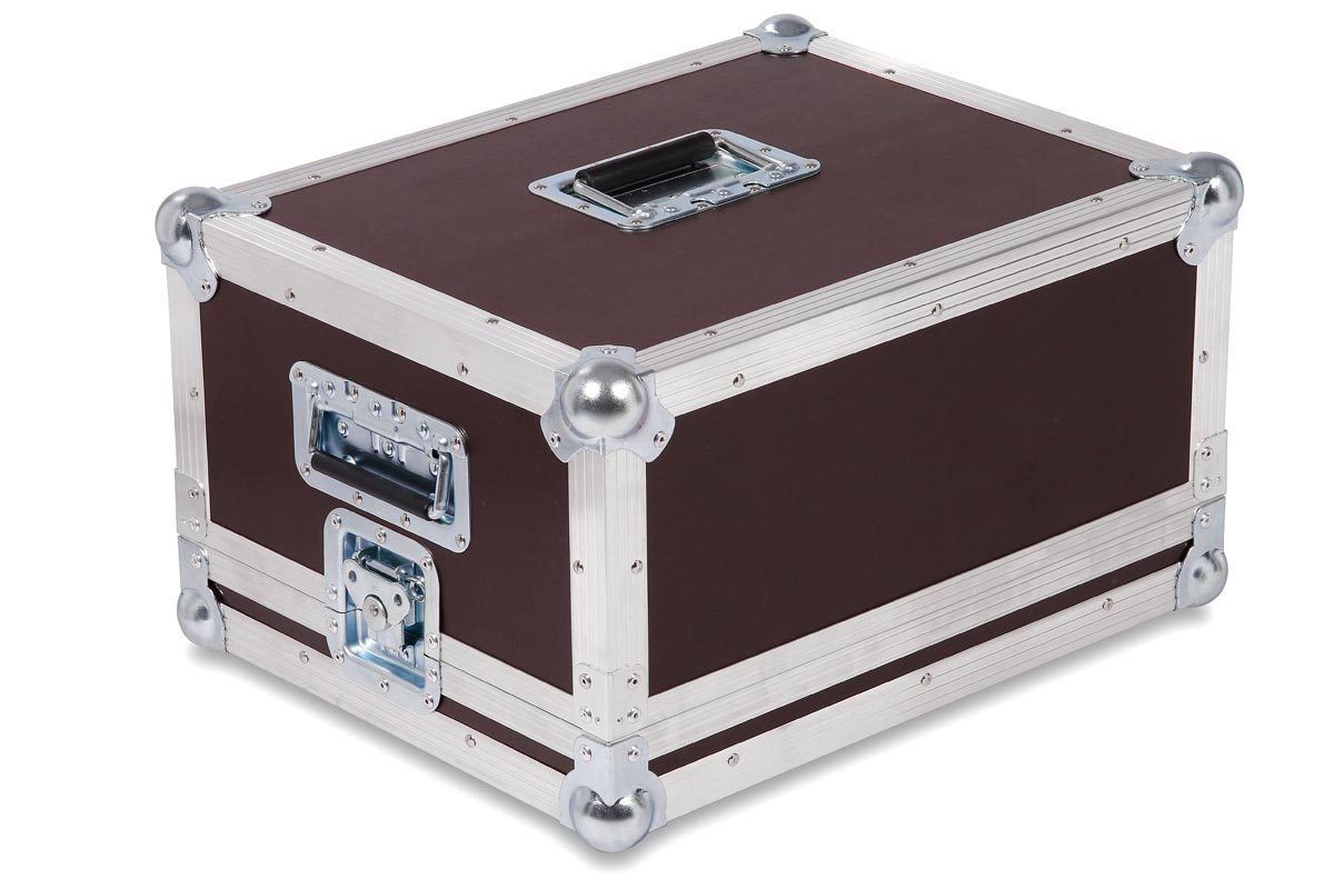 Haube für einen Fogger von Eurolite. Die Nebelmaschine sitzt, gesichert durch Schaumstoff,