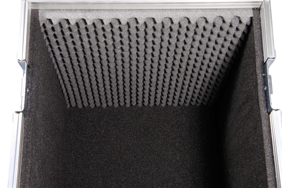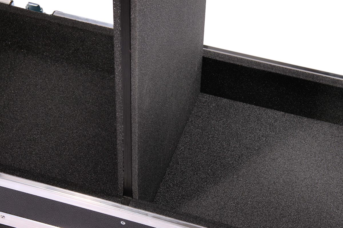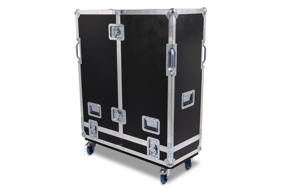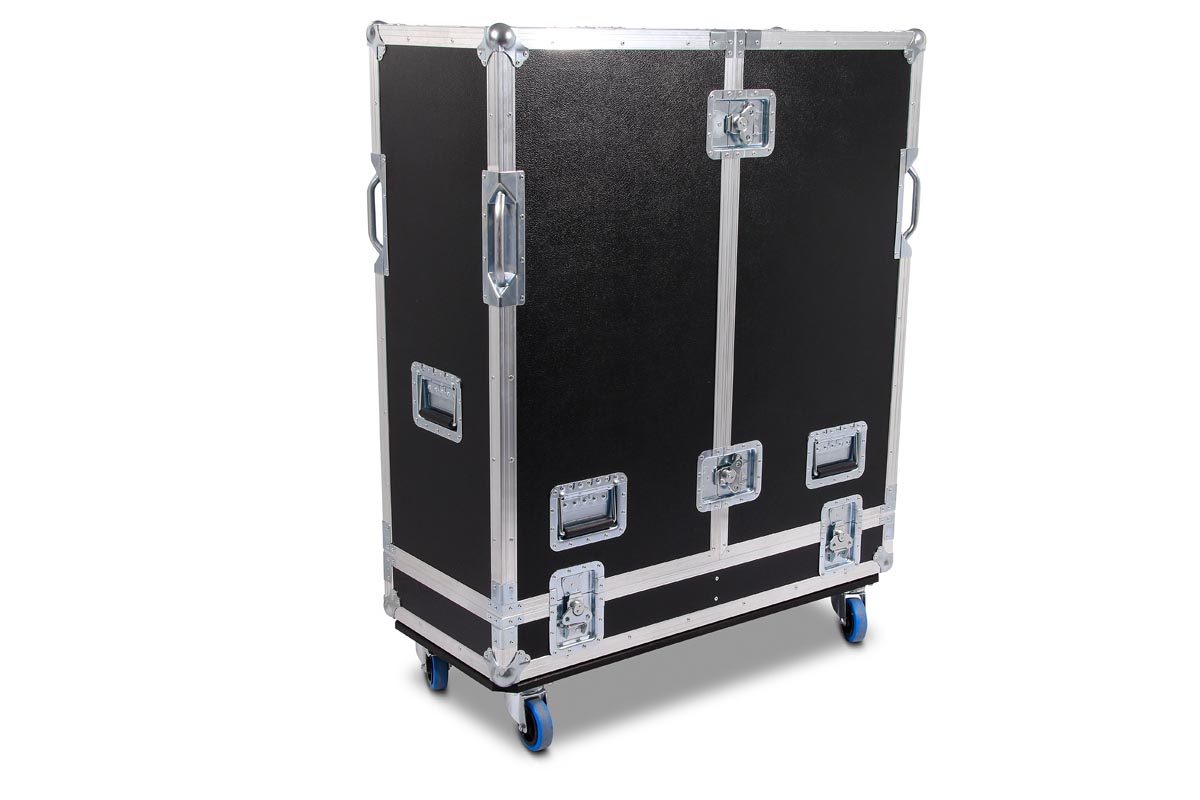 Zwei Line-Array Lautsprecher passen in dieses geteilte Haubencase. Ein gepolstertes Brett trennt die Boxen voneinander.