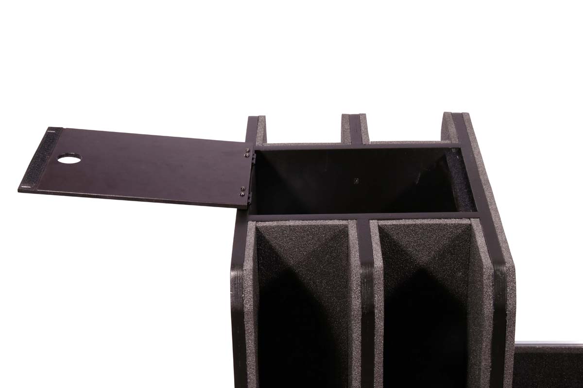 Profi Haube für 2 HK Audio Elements Line Bass Single. Zwischen den Säulen der Hoch-u. Tieftöner liegt ein Zubehörfach mit Abdeckung.
