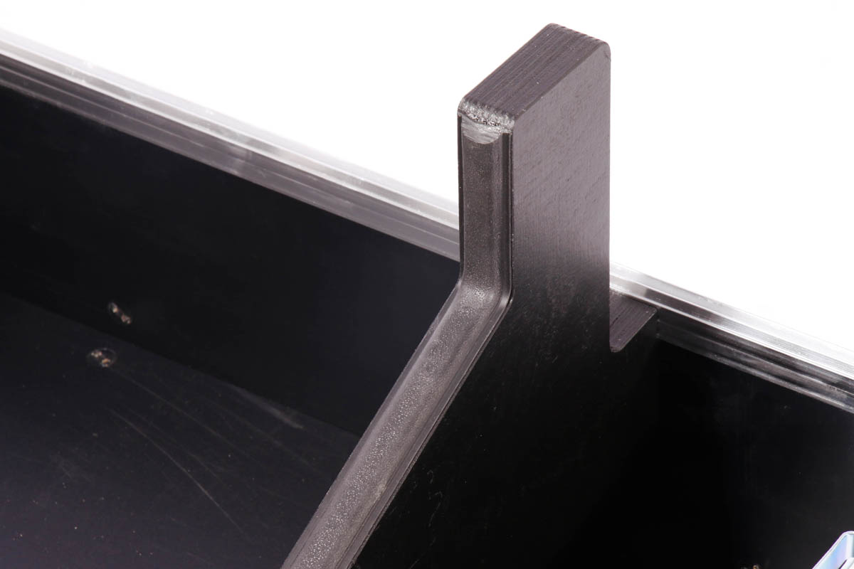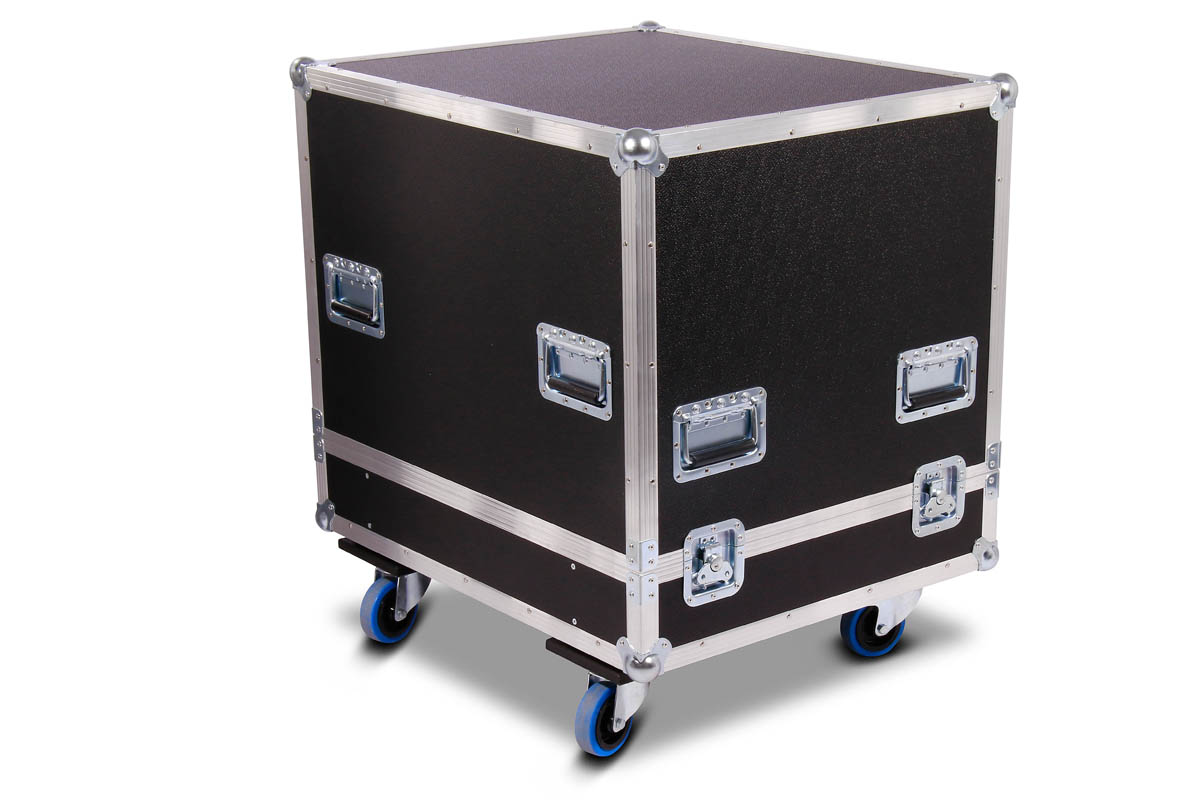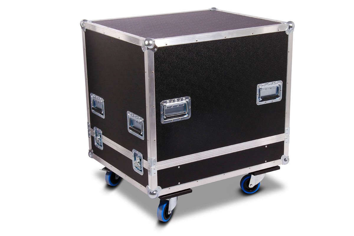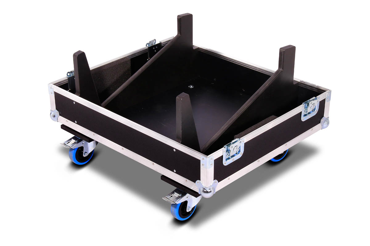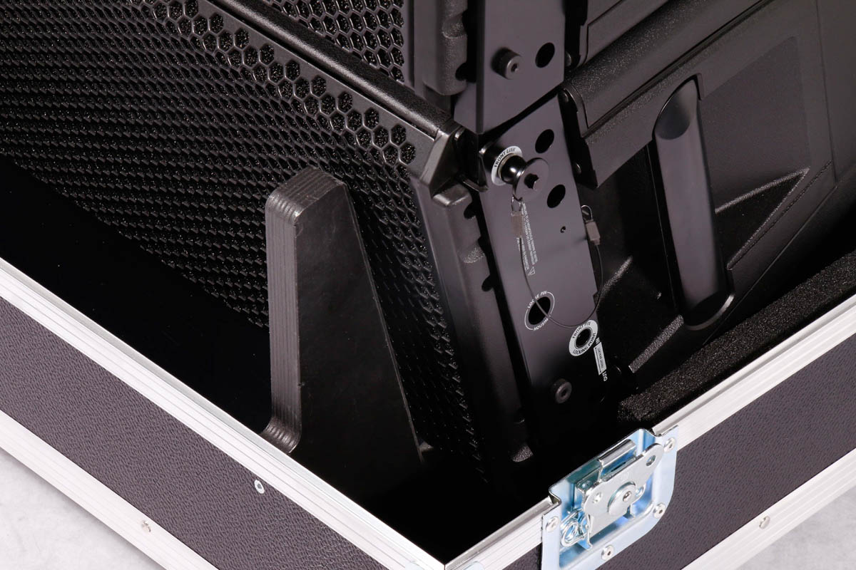 Haubencase schwarz auf Rollen (2 gebremst) mit Schaumstoffpolsterung und Holzjochen für 2 Stück RCF HDL-30A Line Array.