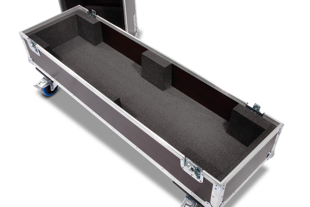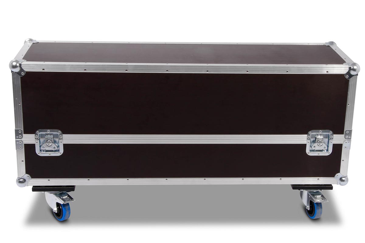 Haubencase auf Rollen für einen liegenden RCF NX-L44A. Das Räderset hat 2 gebremste Rollen und