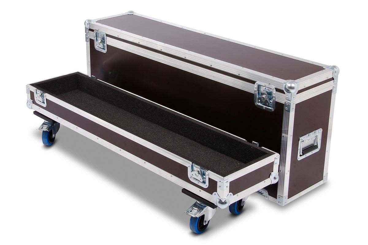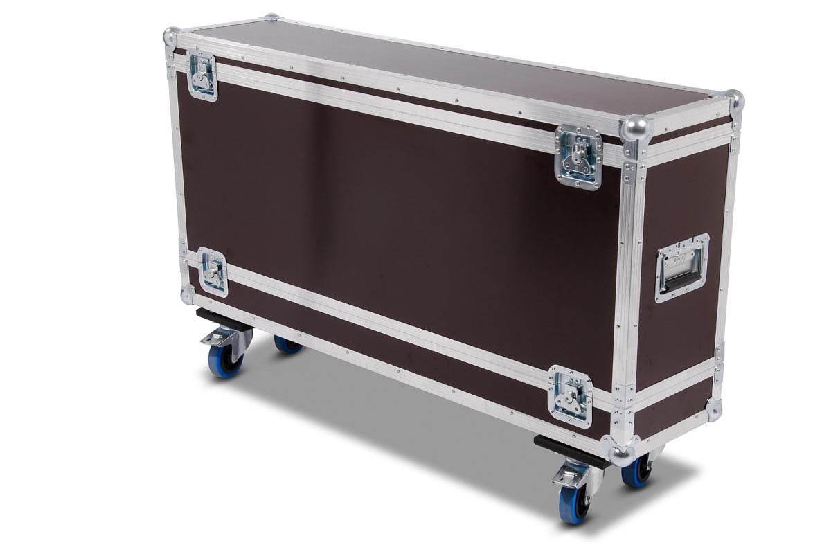 Das Pult lässt sich sehr einfach auf das niedrige Transportunterteil heben. Danach nur noch die leichte Haubenabdeckung drüber. Der oberste Deckel ist separat zu öffnen wie eine Truhe. Das Innenleben ist mir Schaumstoff ausgekleidet und schützt so optimal. Die verwendeten Butterflies lassen sich dauerhaft einfach öffnen und schließen. Mit den 100 mm Rollen lässt sich das ganze Rednerpult problemlos schieben.