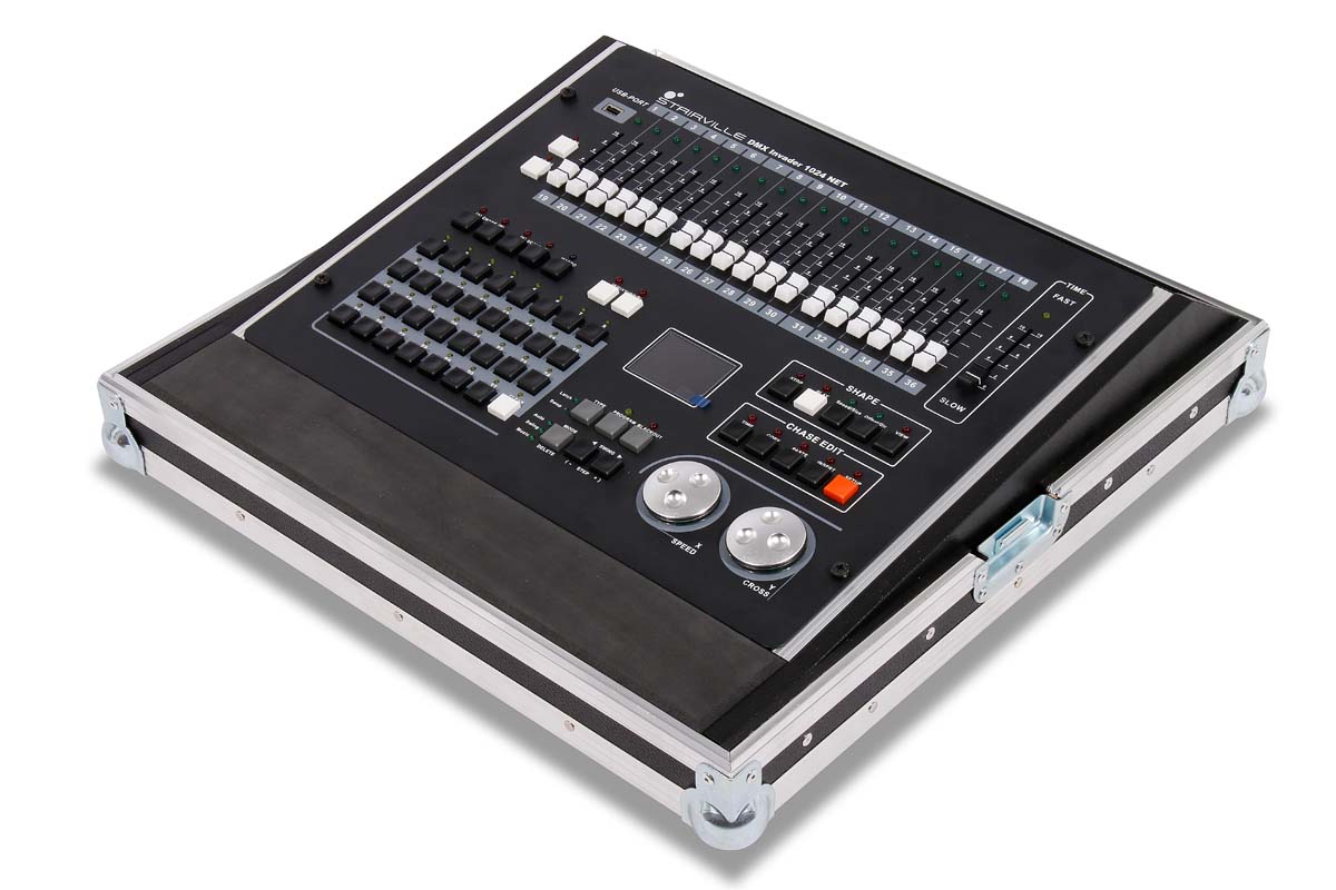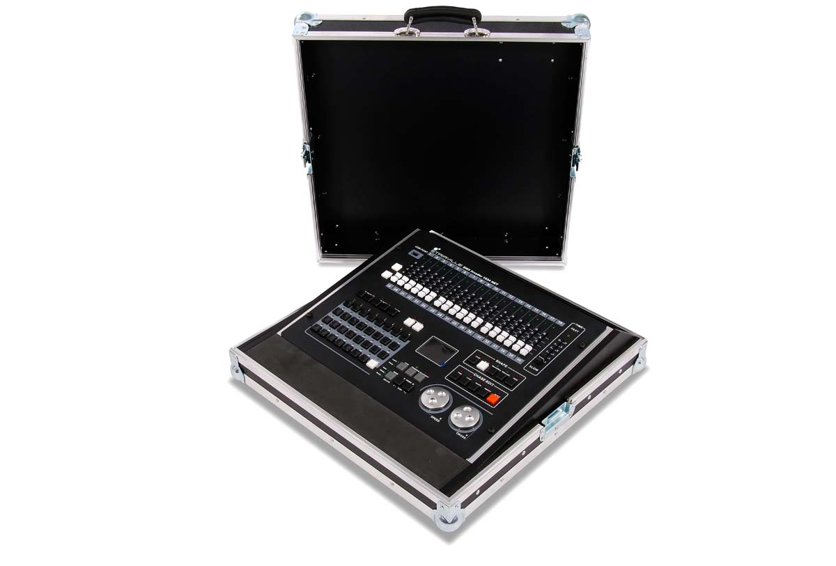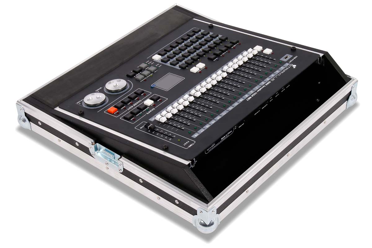 Live Case für Stairville DMX Invader 1024 NET mit Wangen aus schwarz lackiertem Multiplex Wangen u. Rackschienen.