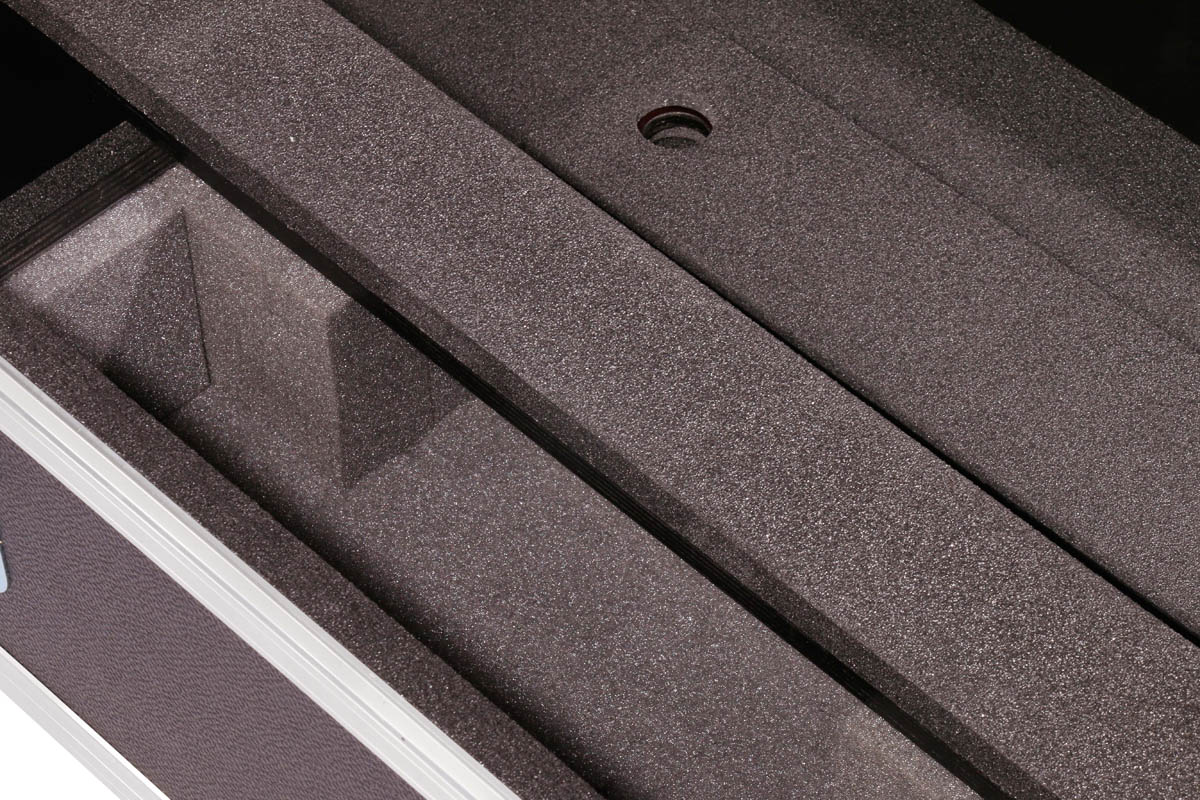 Aussparung für eine graue Zubehörbox;