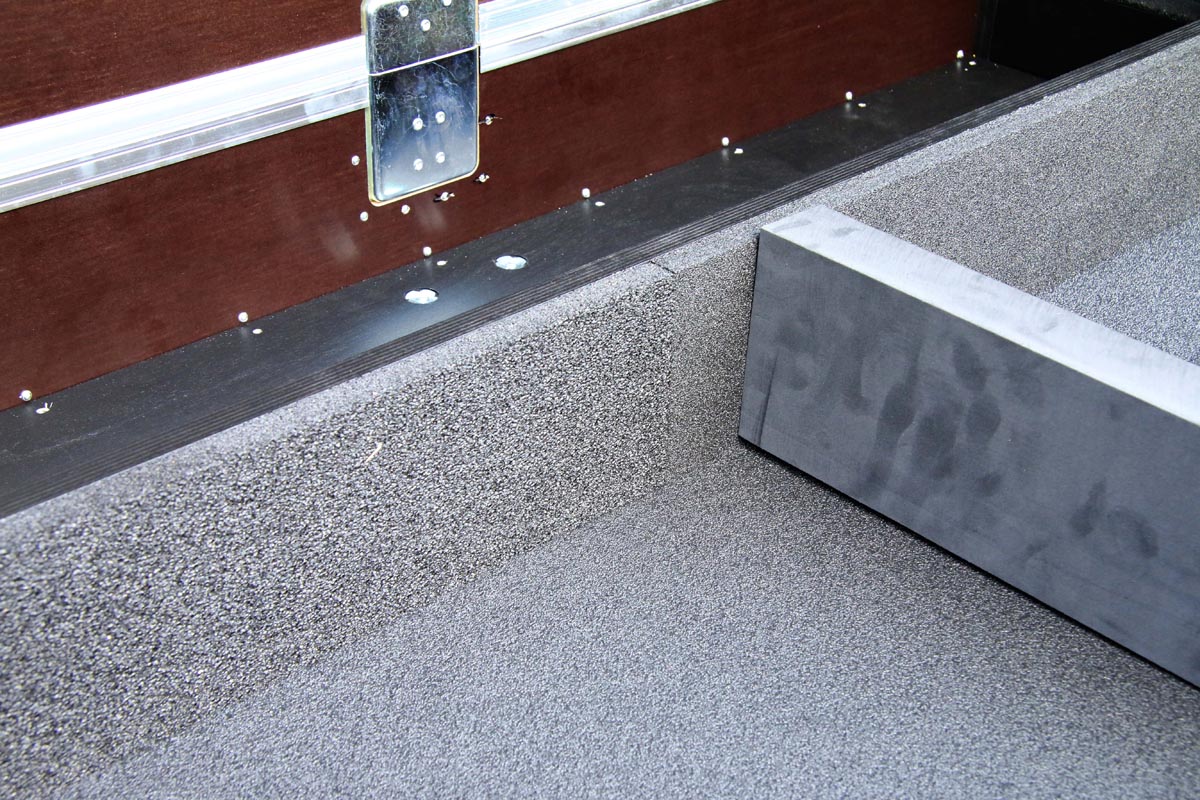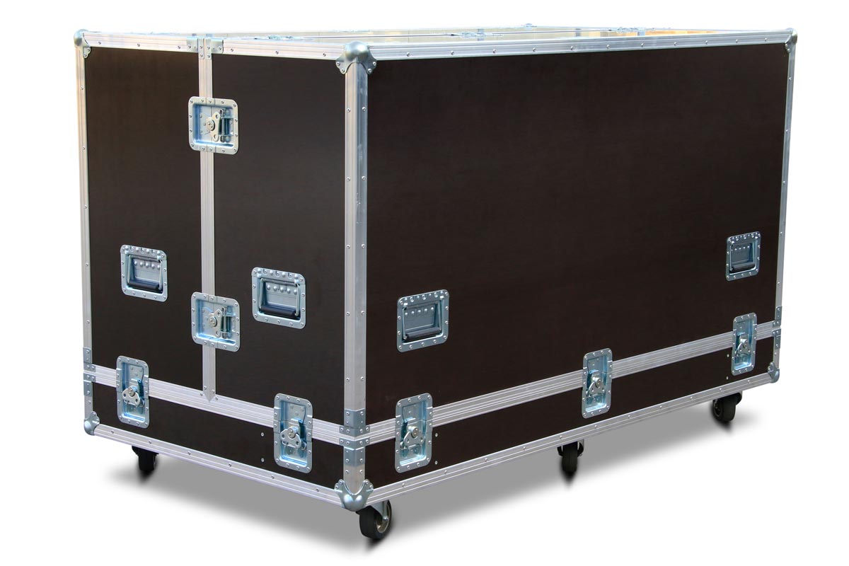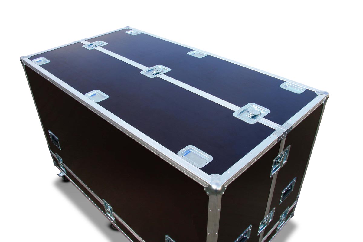 Bei diesen Dimensionen ist das Handling einer geteilte Haube wesentlich einfacher. Dieses Tranportcase ist für robuste Einsätze gebaut worden. Alleine das Innenvolumen von ca. 2,2 m³ zeit welche Dimensionne hier aufgenommen werden können. Selbstredend sind die Fittings an die hohen Anforderungen angepasst: Stahl, Aluminium und 9 mm Multiplex Holz.