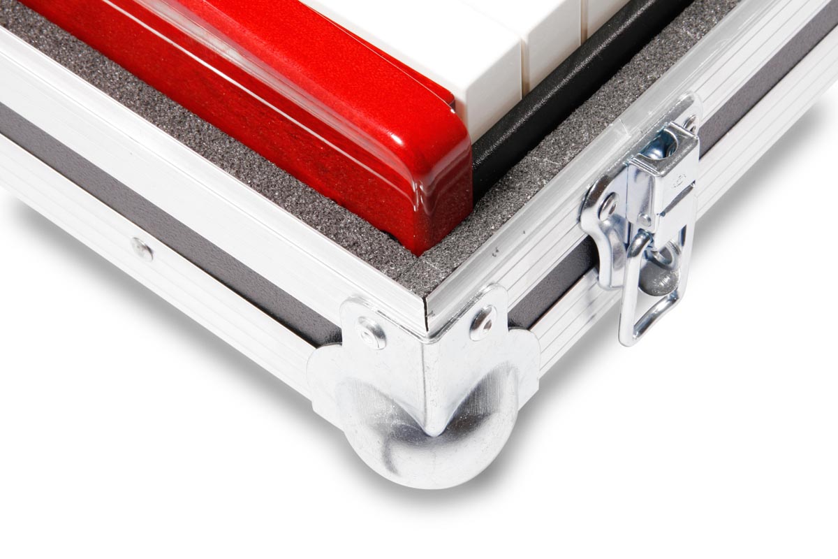 Der verwendete 7 mm Wabenkunststoff, verringert das Eigengewicht des Koffers, gegenüber Holz um 40 %.