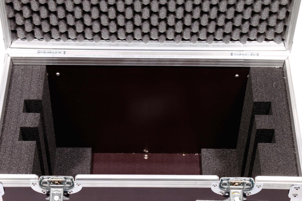 Koffer für 2 kompakte RGBA LED-Fluter von ADJ. Die beiden Profile Panel RGBA passen optimal in das Inlay aus Schaumstoff.