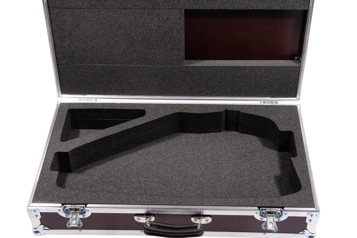 Im Innenraum dieses Transport Koffers ist ein gefrästes Schaumstoffinlay nach den Formen der Auto Harfe von Oskar Schmidt OS150FCE. Der Deckel hat zwei Feststellscharniere zum aufklappen. Die Anbauteile sind aus Stahlblech und Aluminium was das Flightcase äußerst robust und widerstandsfähig gegen Beschädigungen macht.