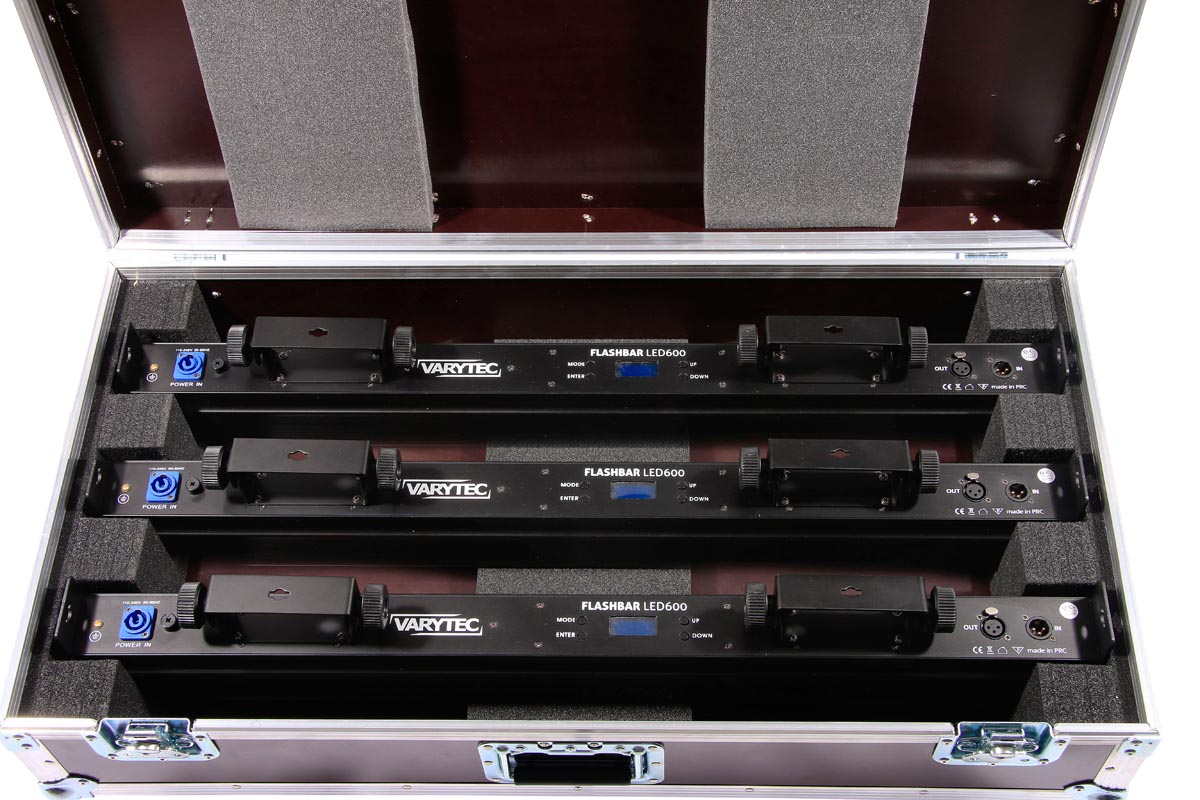 Drei Varytec Flashbar LED 600 passen in diesen Transportkoffer.
