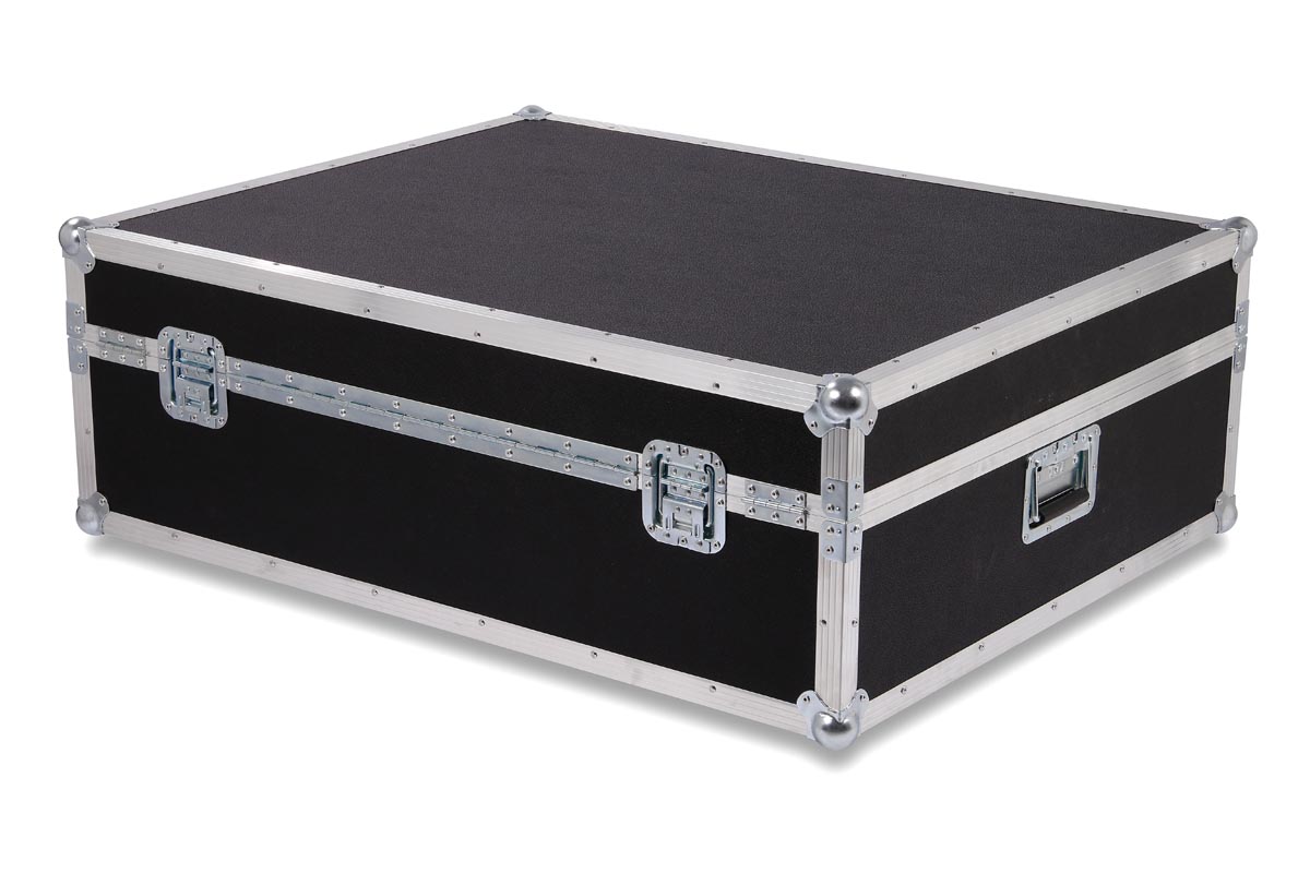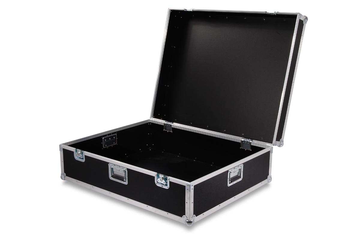 Koffer aus schwarzem Multiplex Mehrschichtholz.