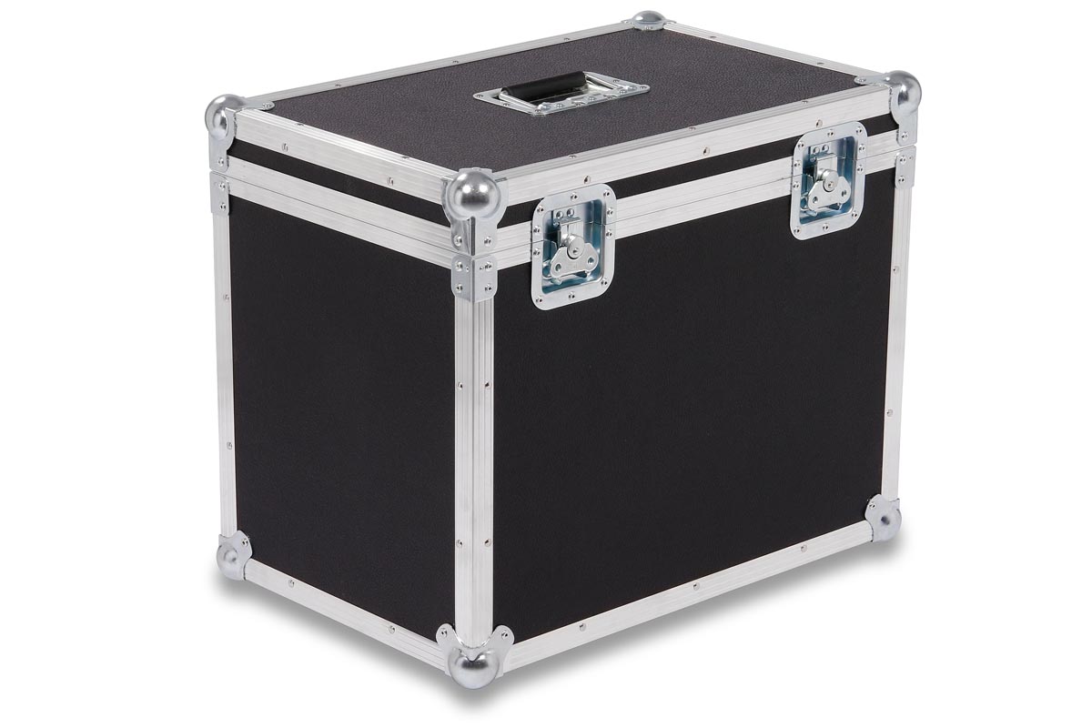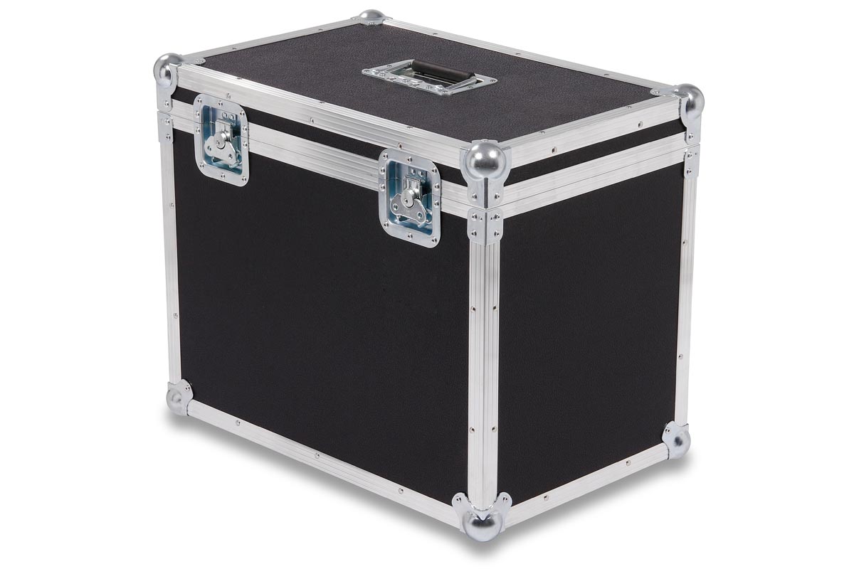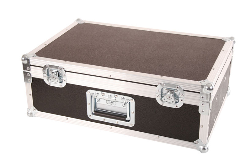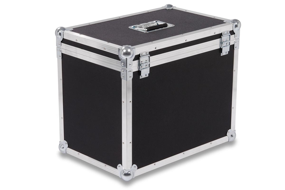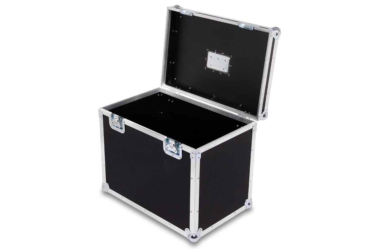 Transportkoffer ohne Polsterung mit hochwertigen Fittings wie Aluminiumkanten, Stahlkugelecken, Butterfly Dreh Verschlüsse und Klappgriff aus Stahl.