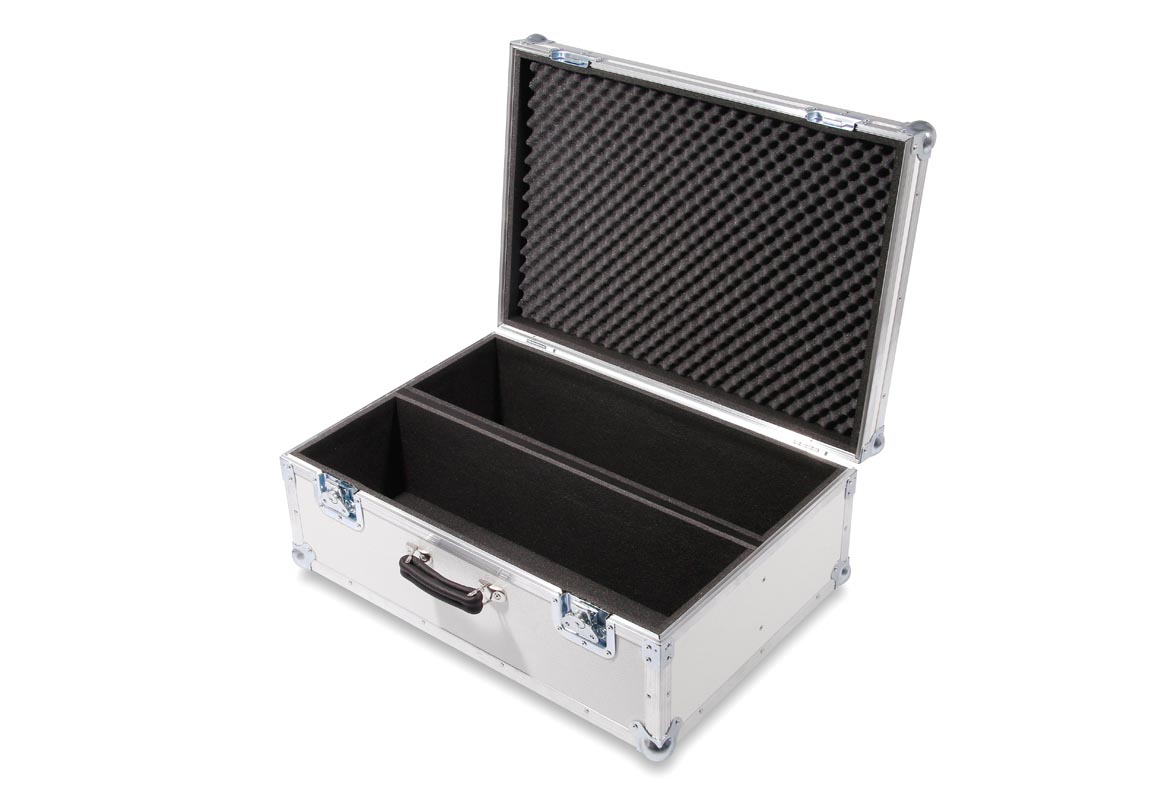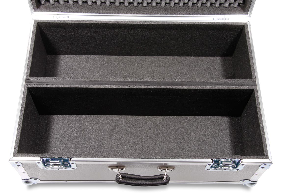 Koffer mit Trennbrett. Die beiden Fächer haben die Maße BxTxH 650x196x200mm und sind mit 10 mm Schaumstoff ausgekleidet.