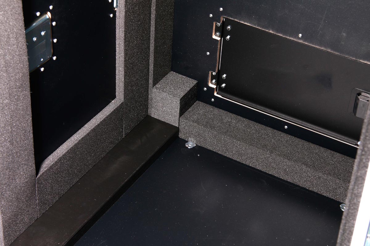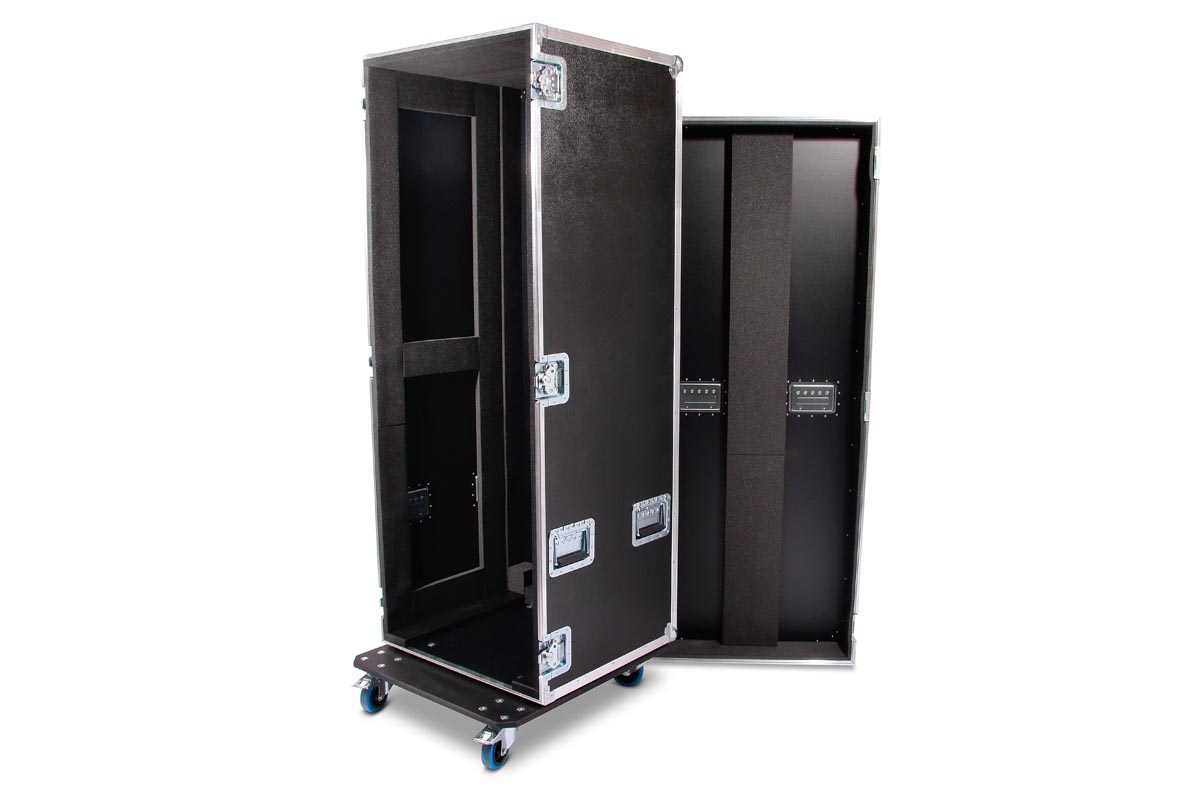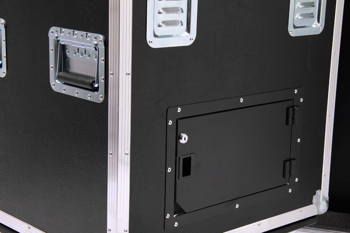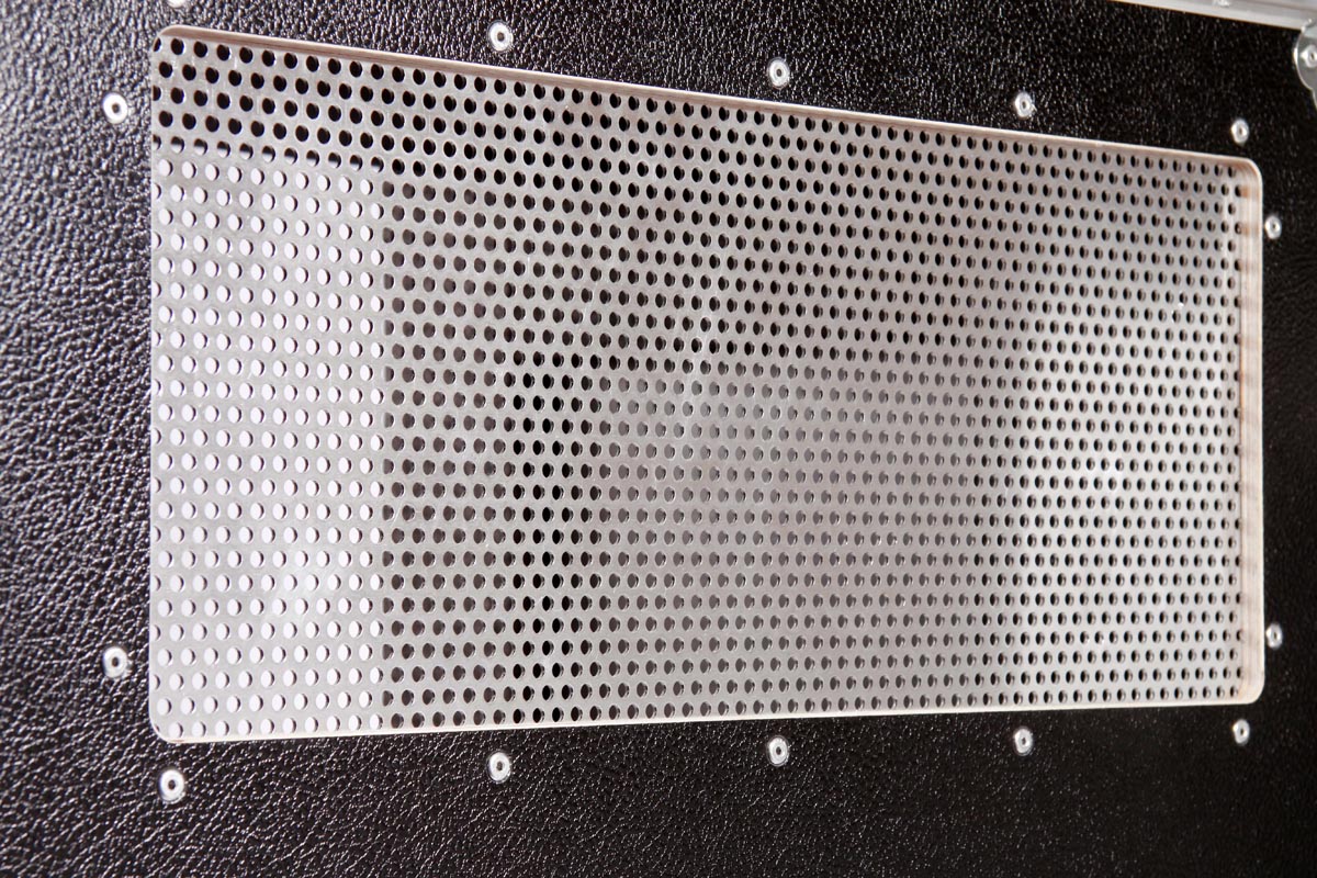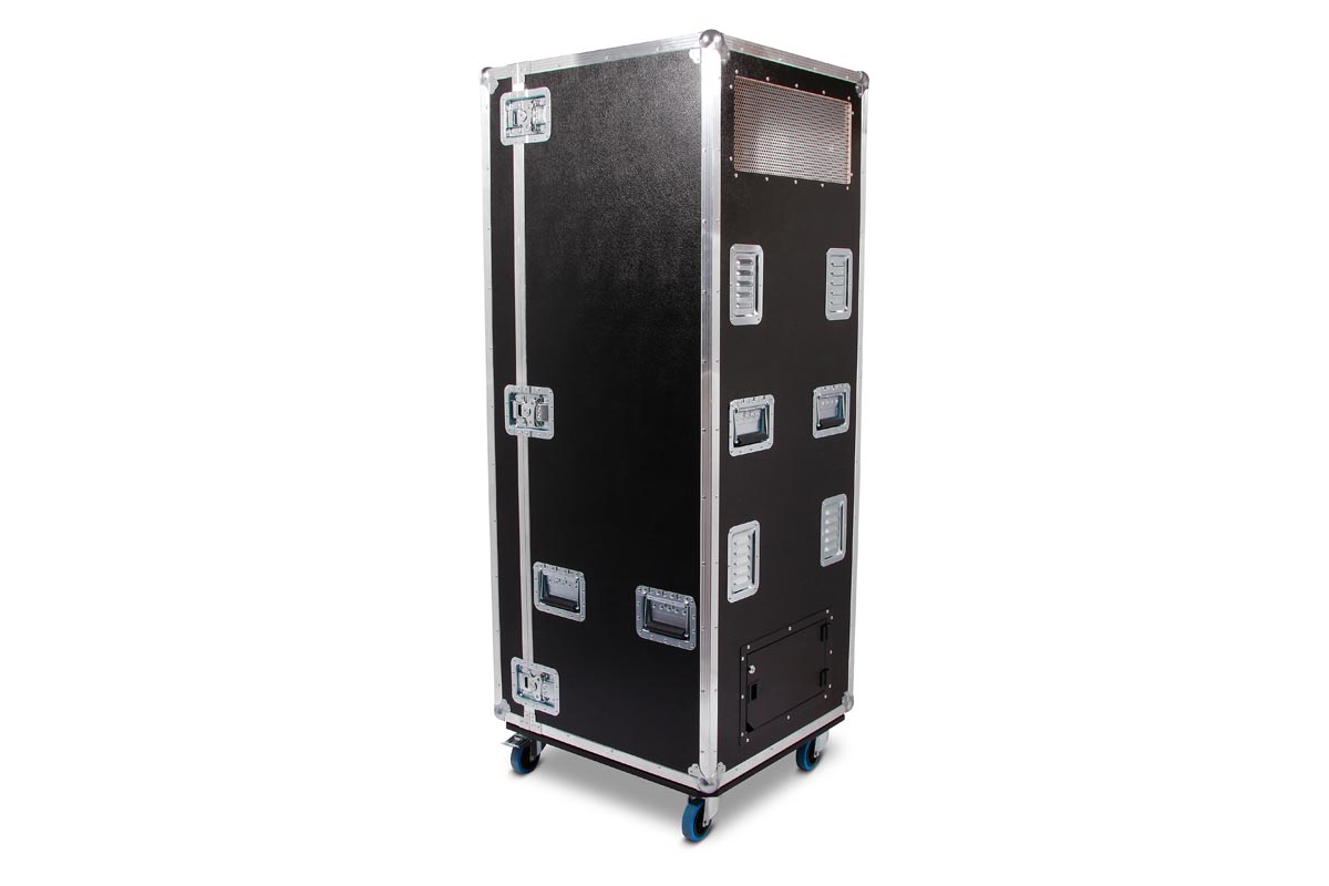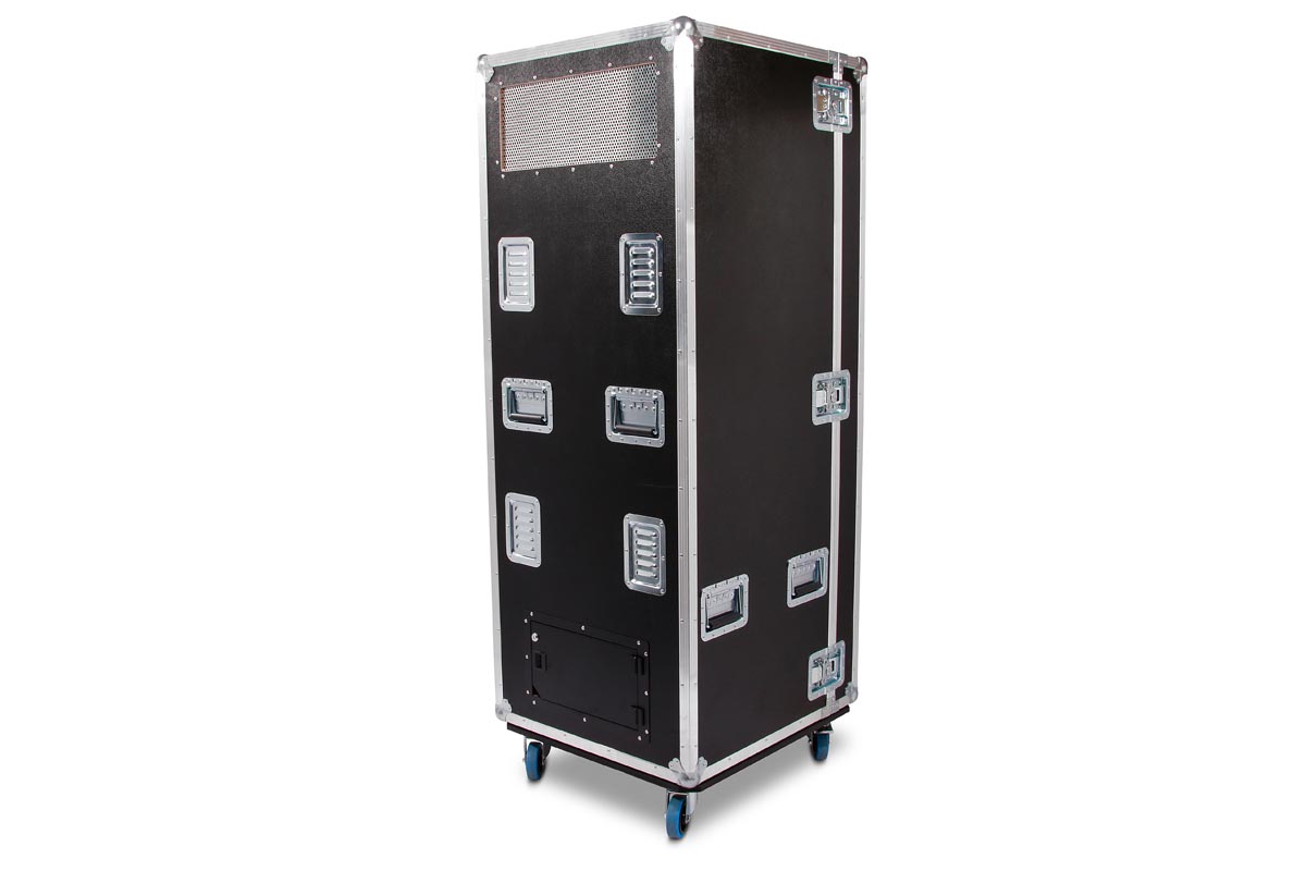 Maßgefertigtes Singledoor Case für einen Kühlschrank mit Lüftungslochblech an der Rückseite und vier zusätzlichen Entlüftungsschalen.,