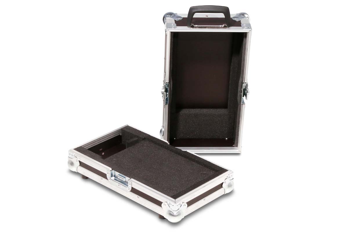 Hinter dem Mixer befindet sich ein integrierter Kabelkanal, der eine ordentliche und praktische Kabelführung ermöglicht. Die stabile Flightcase-Konstruktion aus Phenol-beschichtetem Multiplex und hochwertigen Beschlägen ist ideal für den Einsatz im DJ-, Event- und Touringbereich.