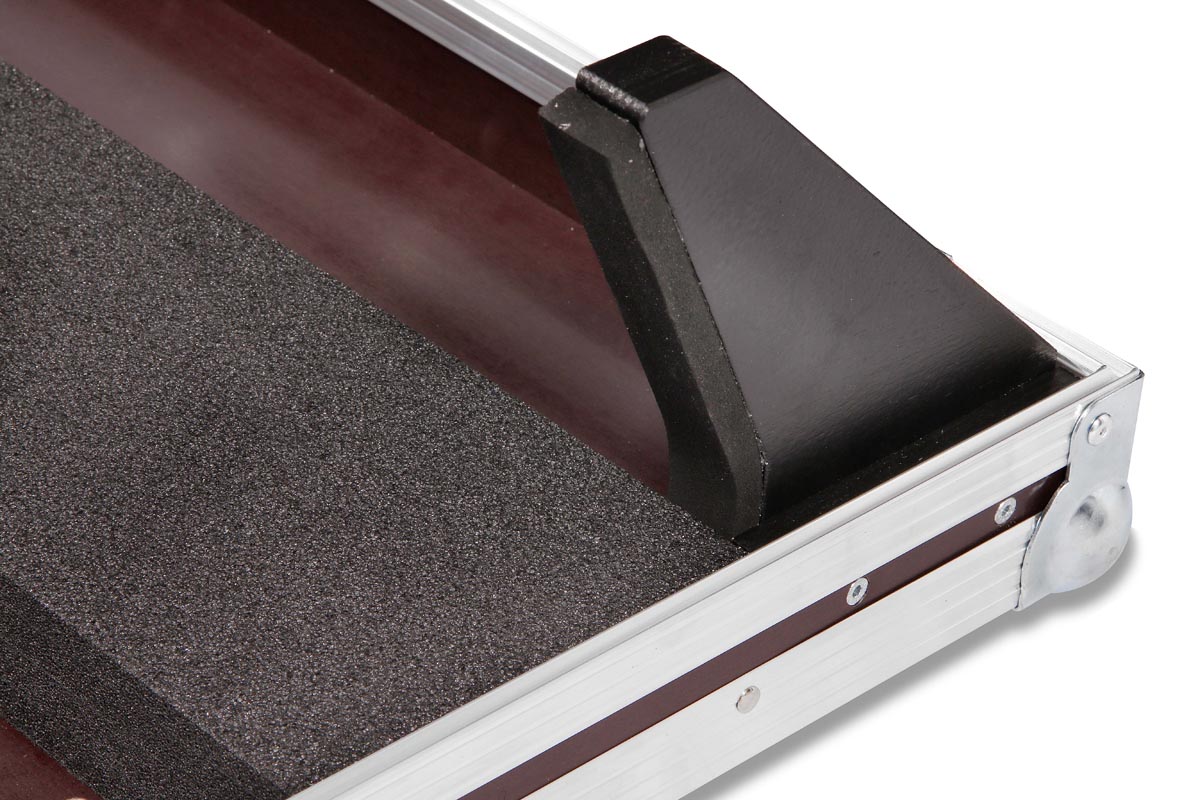 Alle Anschlüsse sind offen zugänglich. Zwei mit Gummi bezogene Wangen, sichern den Mixer nach hinten. Die Polsterung ist so effizient angebracht, dass erstens der Presonus gut fixiert und sicher sitzt und zudem auch Gewicht gespart wird.