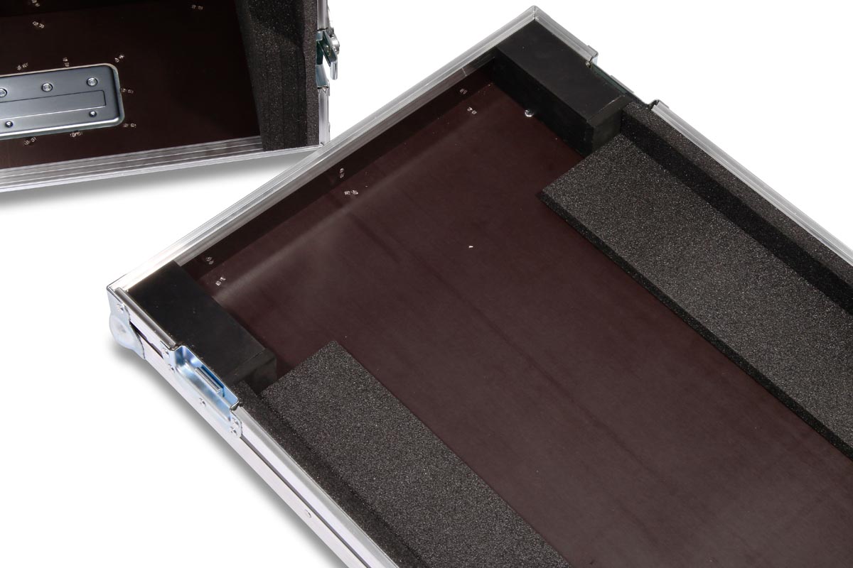 Hinter dem Mixer ist ein ca. 10 cm tiefer Kabelkanal. Das Gerät ist direkt im Case spielbar.