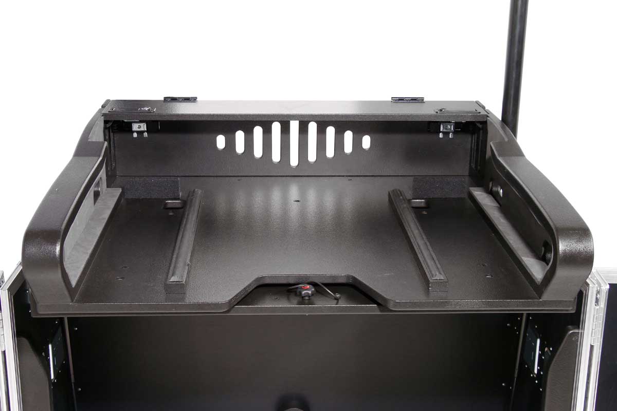 Das Mischpult kann für den Transport u. Event im Case bleiben.