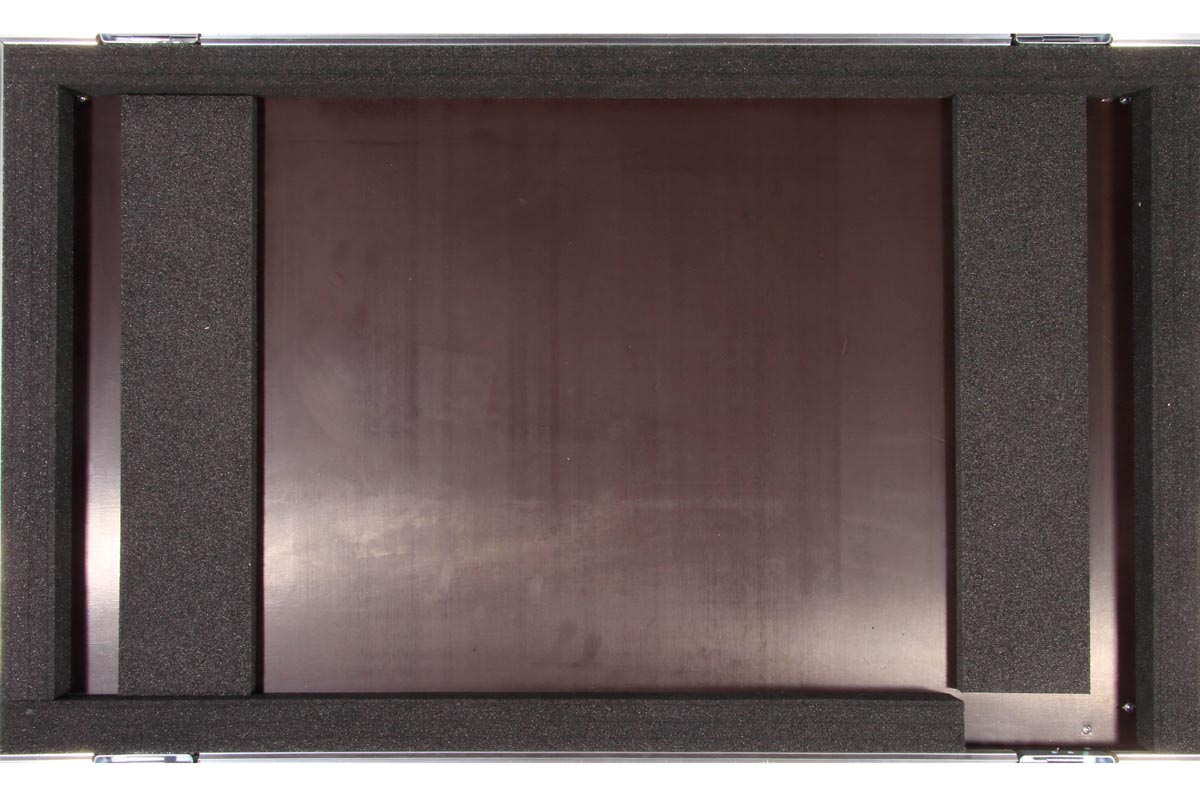 Das Gerät sitzt in einem angepassten Bett aus Schaumstoff. Alle Anschlüsse können direkt erreicht werden.