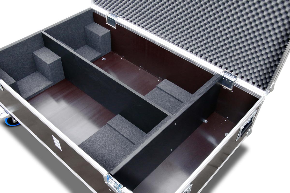 Für 2 hochleistungs Linienstrahler bietet diese flache Transporttruhe perfekt Platz.