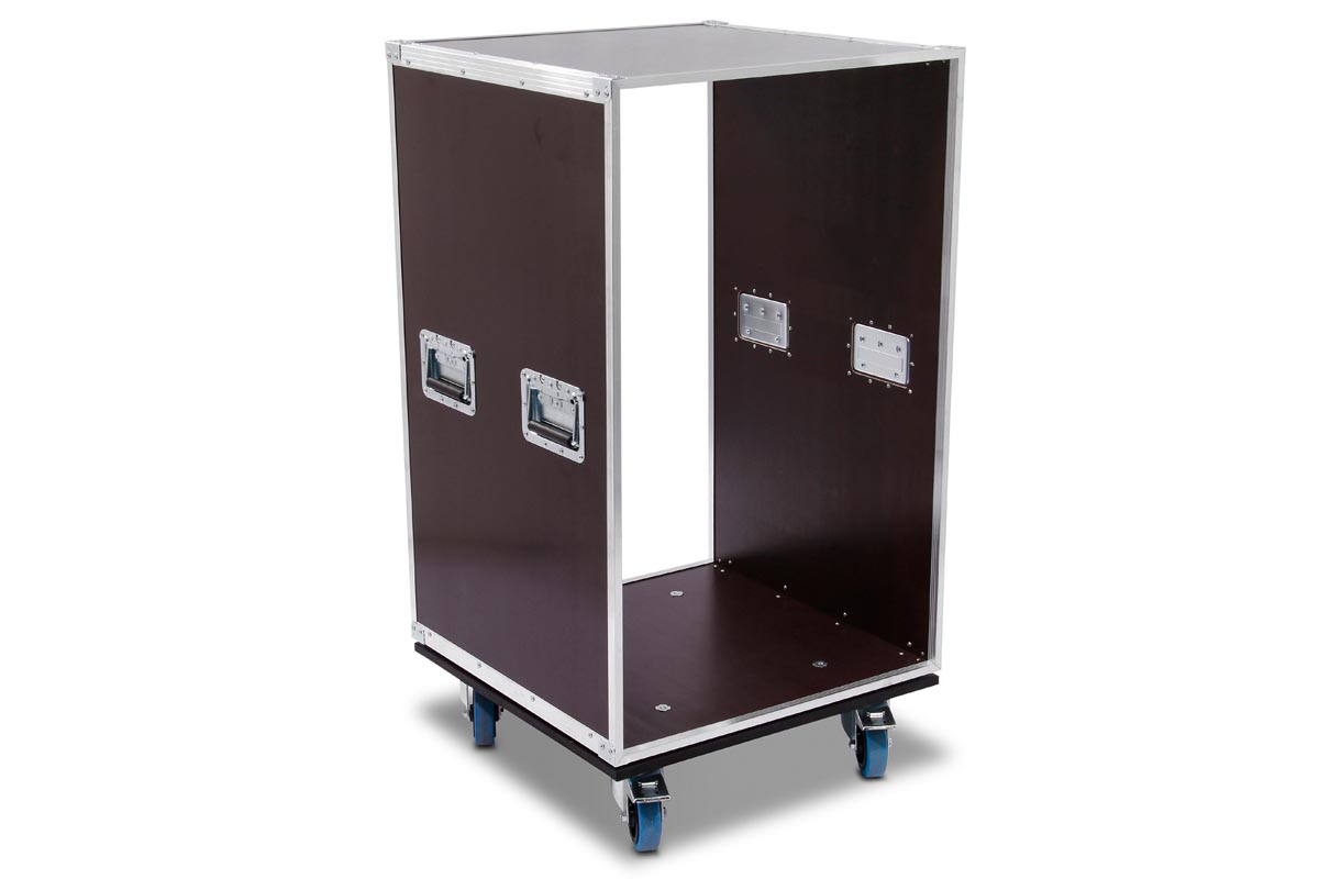 Als Transportschutz wurde dieses Studio Rack gebaut. Ohne Deckel kann man den