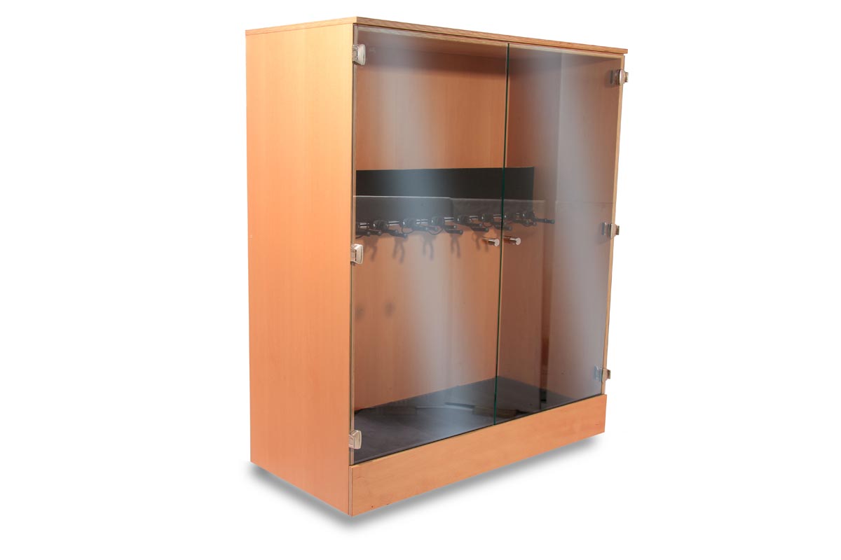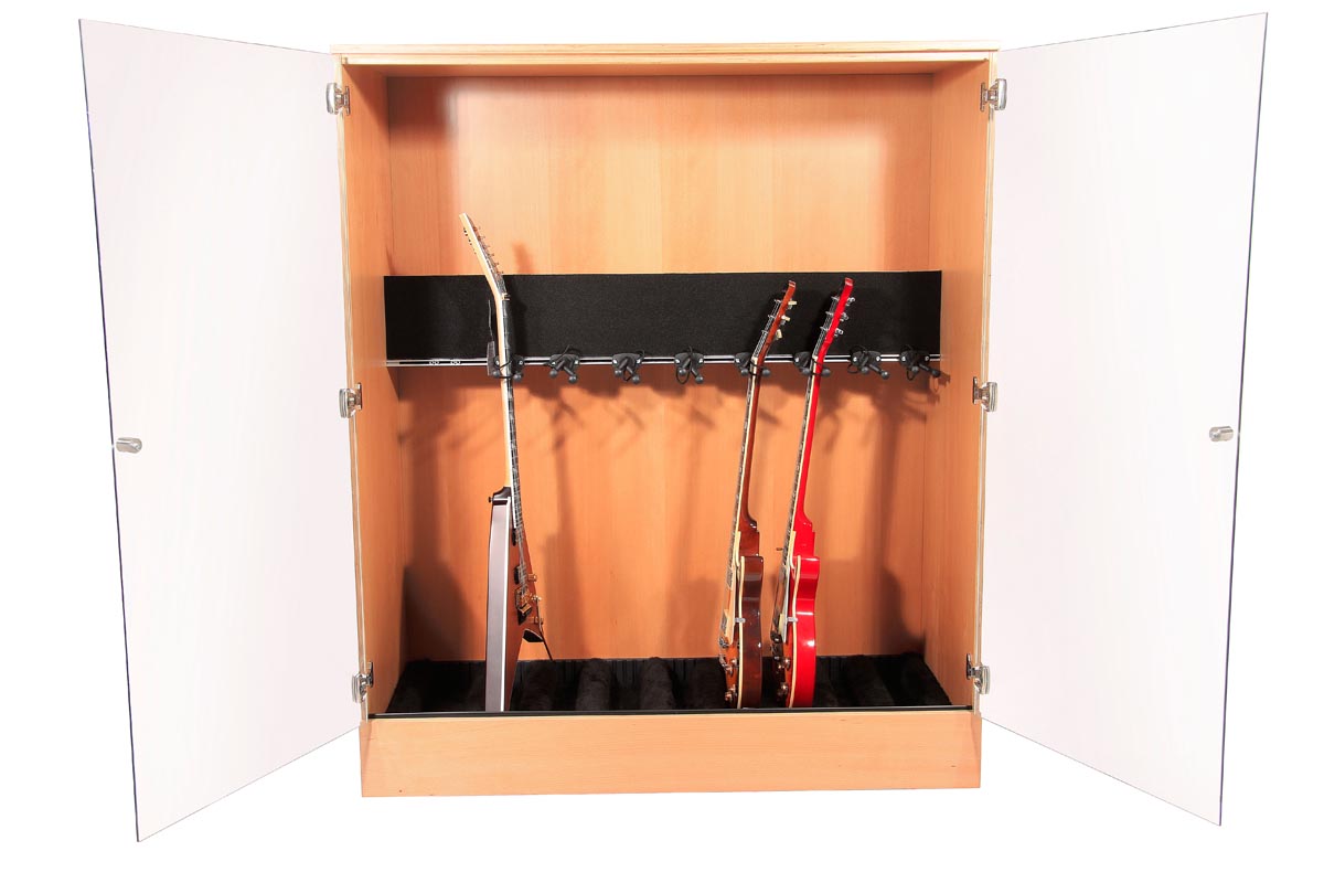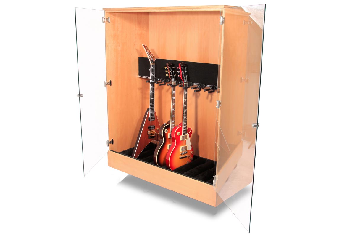 Studiomöbel Gitarrenschrank mit Glastüren BU lackiert 10in1