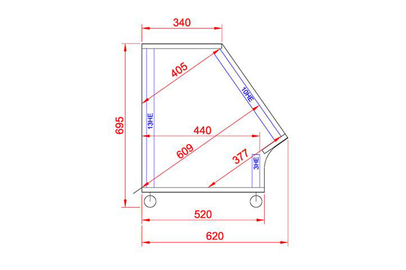 10 HE Rackschiene mit Gummikeder in einem 35 Grad Winkel montiert vorne